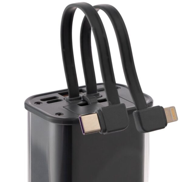 Встроенные кабели позволяют заряжать устройства с разъемами USB Type-C и Lightning.