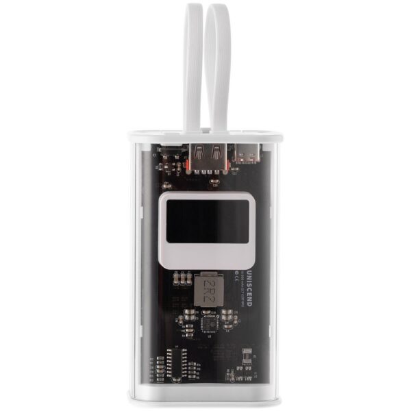 Необычный дизайн коллекции Uniscend Trellis выгодно выделяет новую серию устройств из прозаичного ряда внешних аккумуляторов. Они не поддерживают беспроводную зарядку, зато точно привлекают внимание: под прозрачной панелью хорошо видна электронная начинка. Цифровой индикатор показывает оставшийся в аккумуляторе заряд, а также отображает показатели зарядного процесса Quick Charge в вольтах и амперах.