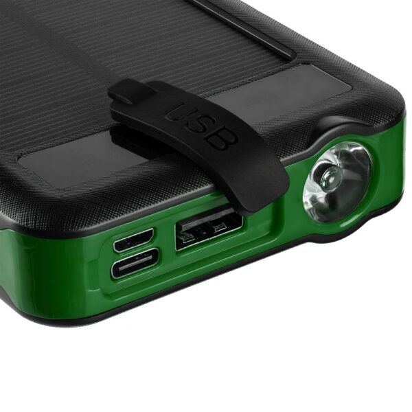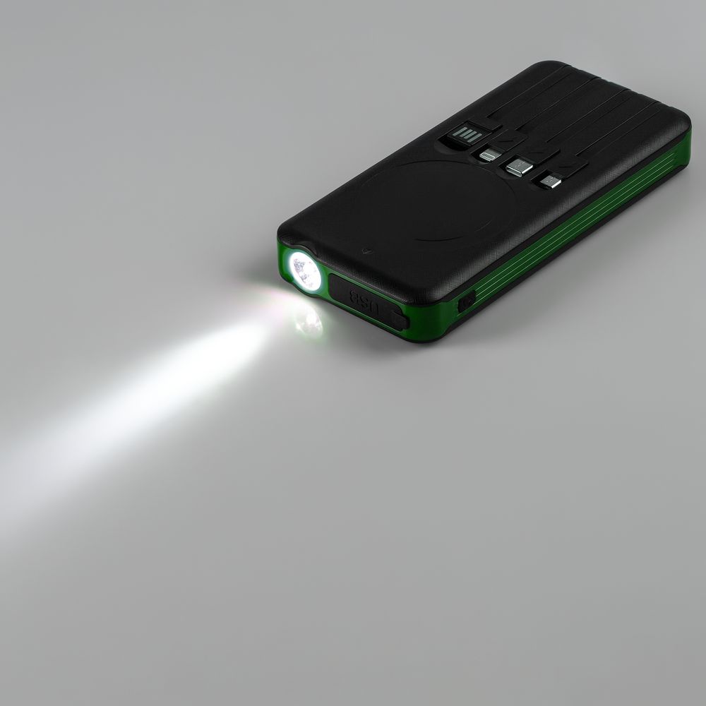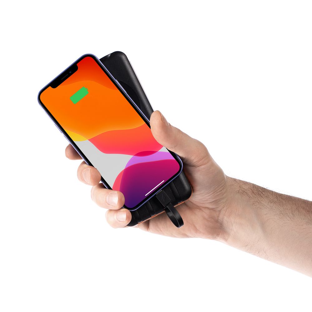 Holiday Maker — outdoor-аккумулятор с ударопрочным корпусом и защитой от пыли и брызг, который не страшно взять в поход. С ним удобно заряжать разные типы устройств благодаря 3 встроенным кабелям с разъемами micro USB, Type-C и Lightning. С солнечной батареей получится не остаться совсем без связи. Яркий фонарик осветит путь или послужит сигнальным маячком.