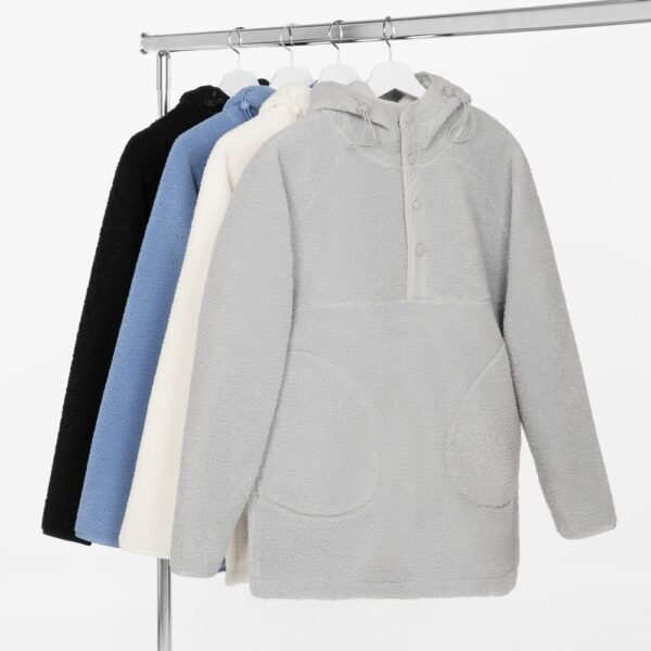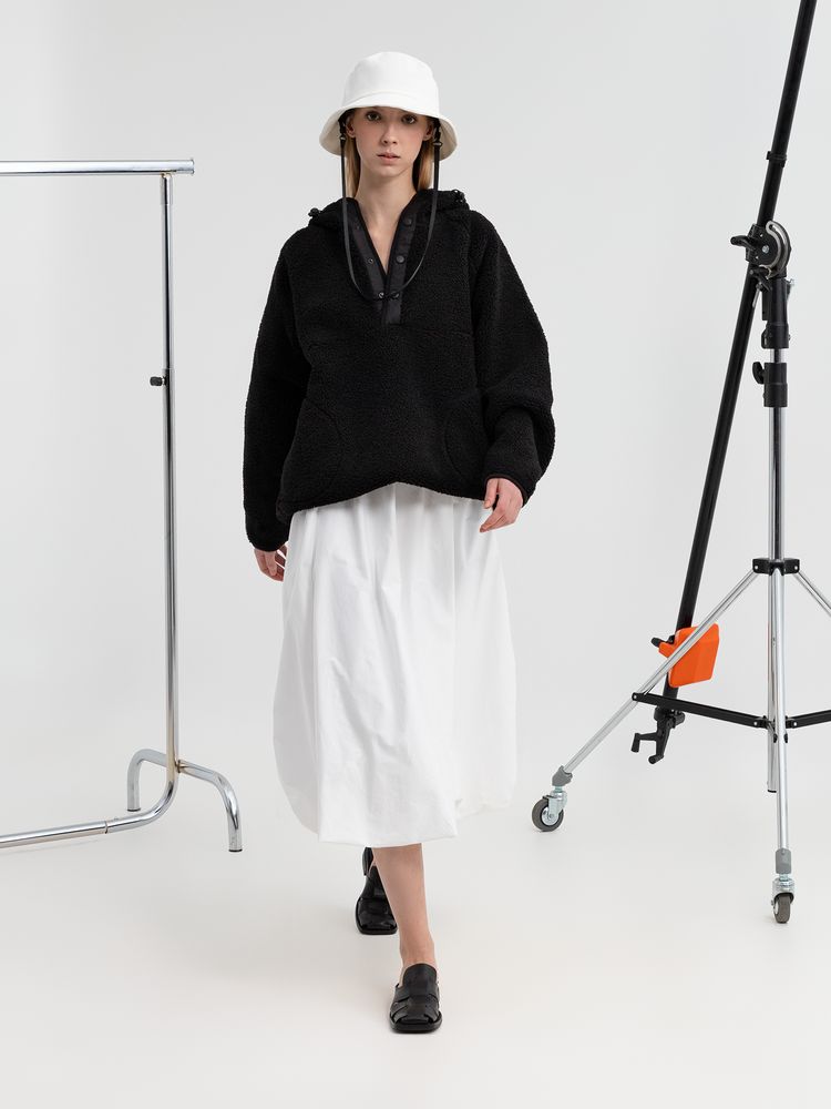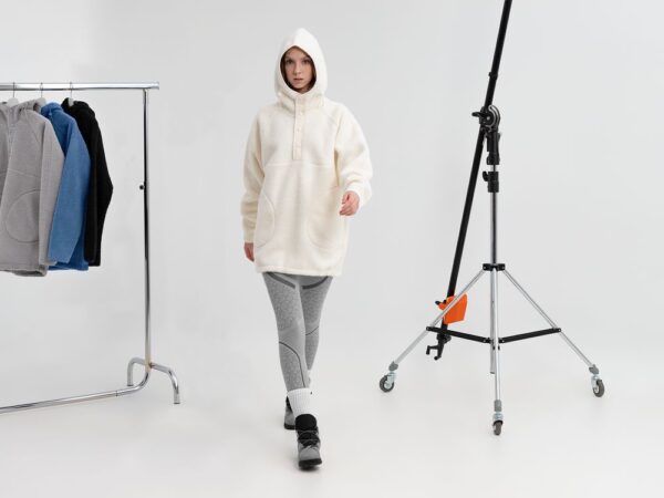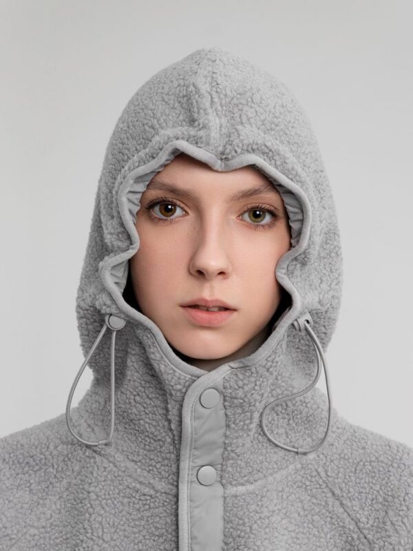 Анорак с капюшоном из современного двухслойного материала— искусственный мех снаружи, флис внутри.