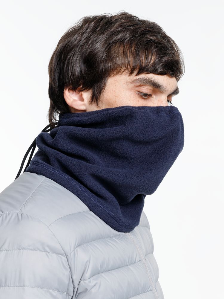 Бафф можно носить как шарф или защитную маску. Регулируется утягивающим шнурком, что делает его универсальным по размеру и позволяет удобно фиксировать.