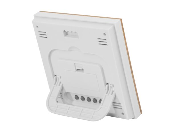 Благодаря встроенным датчикам метеостанция показывает температуру воздуха, уровень влажности, дату и время.