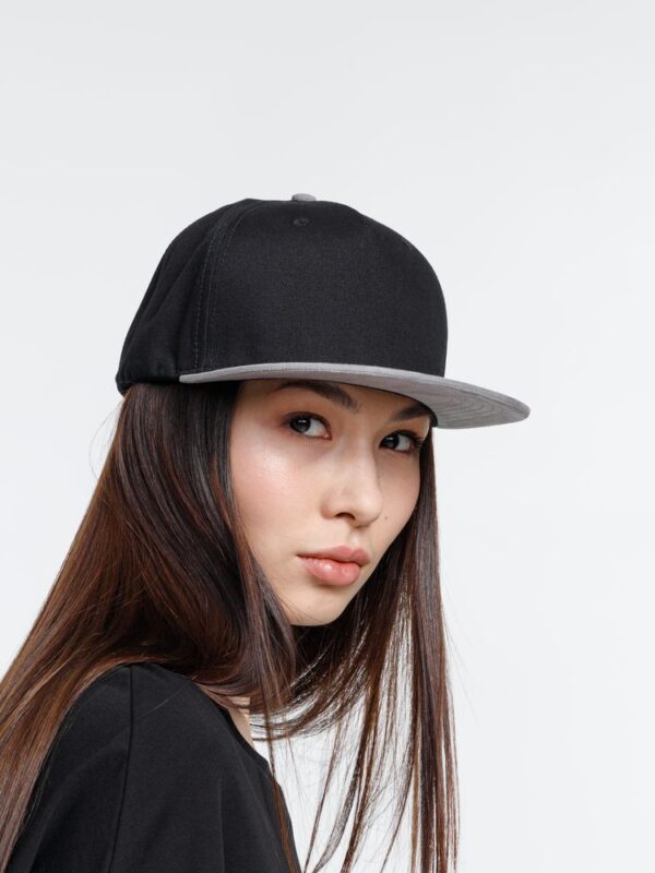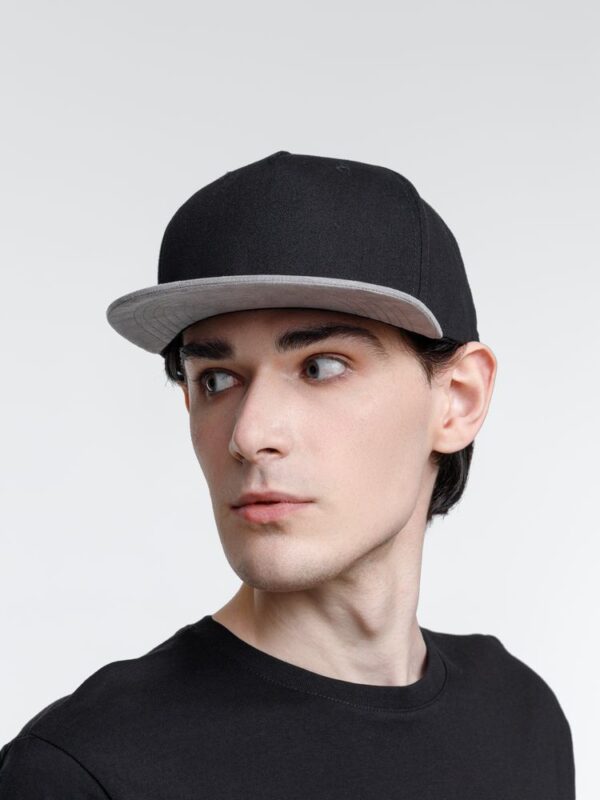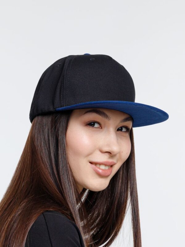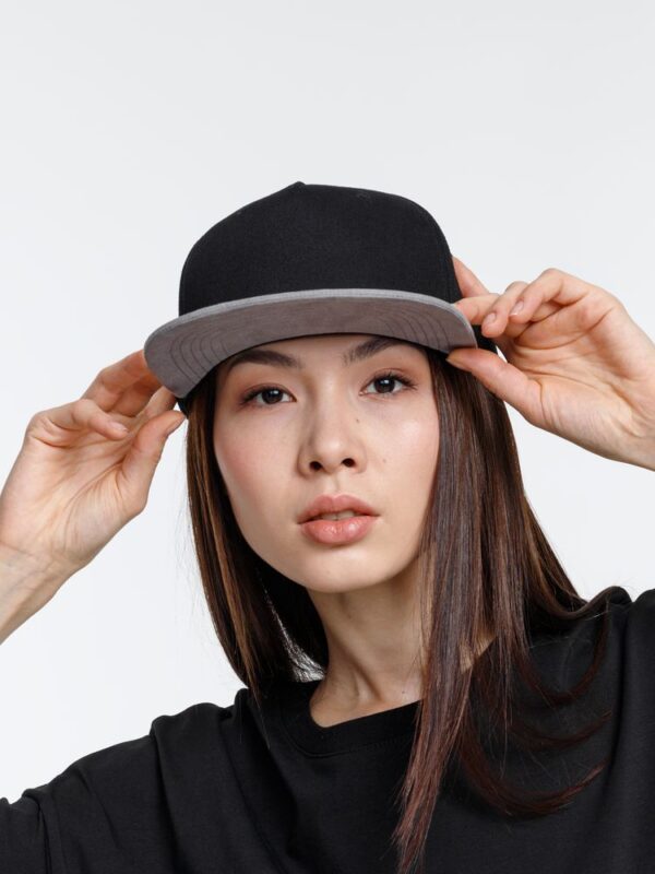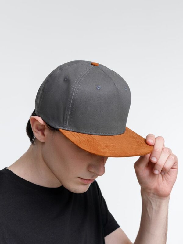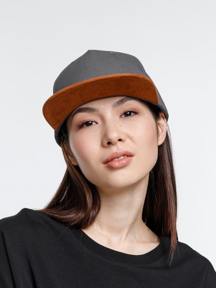 - Плотный контрастный прямой козырек из мягкой, приятной на ощупь ткани с велюровым эффектом