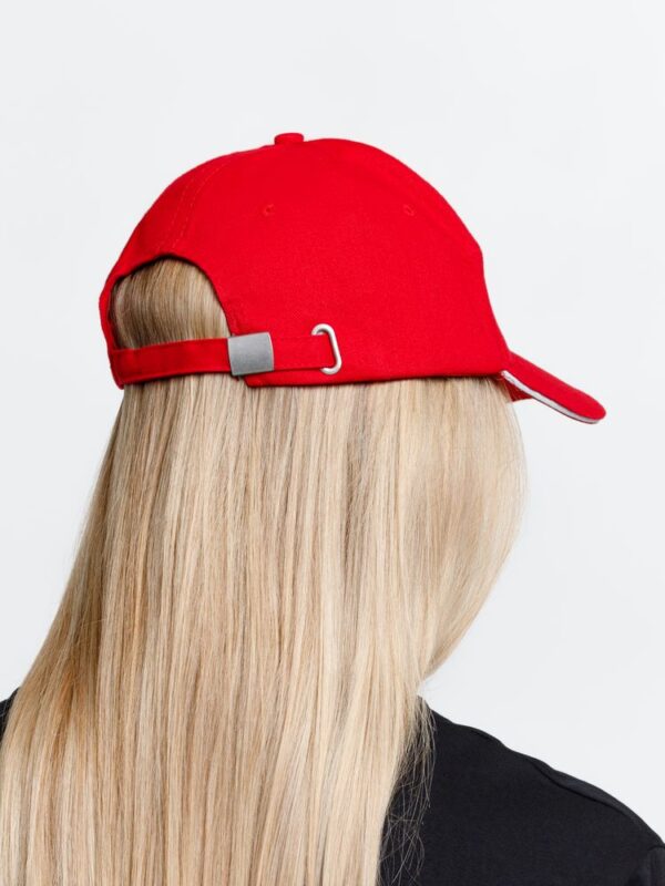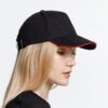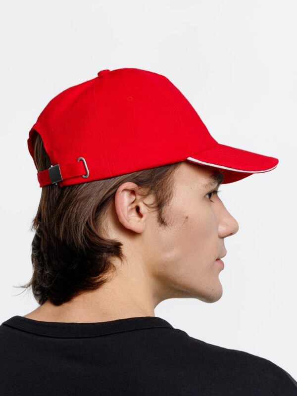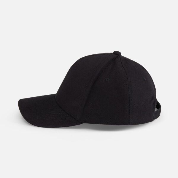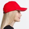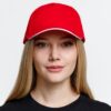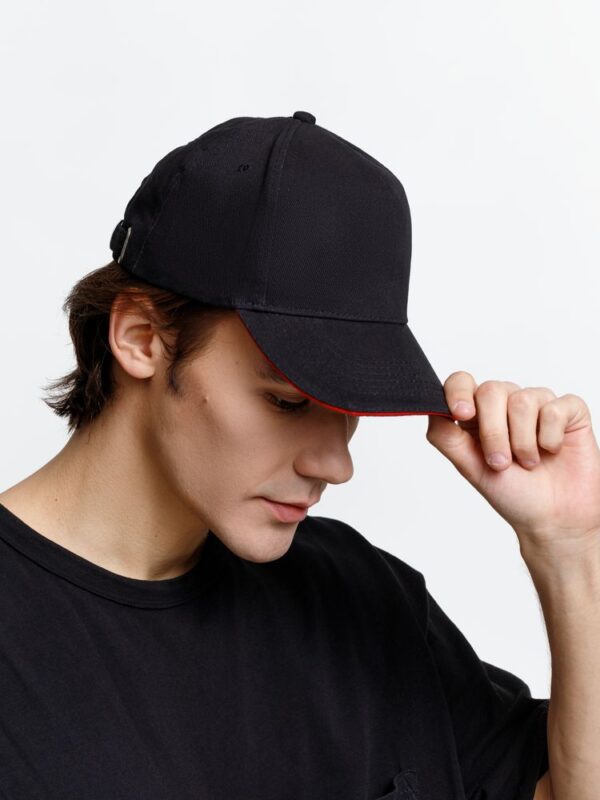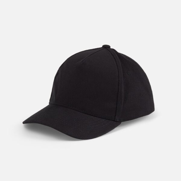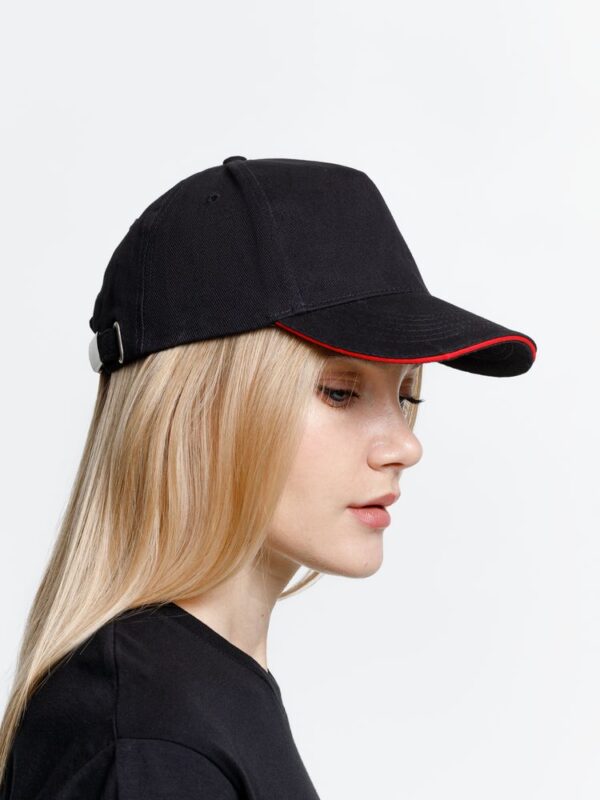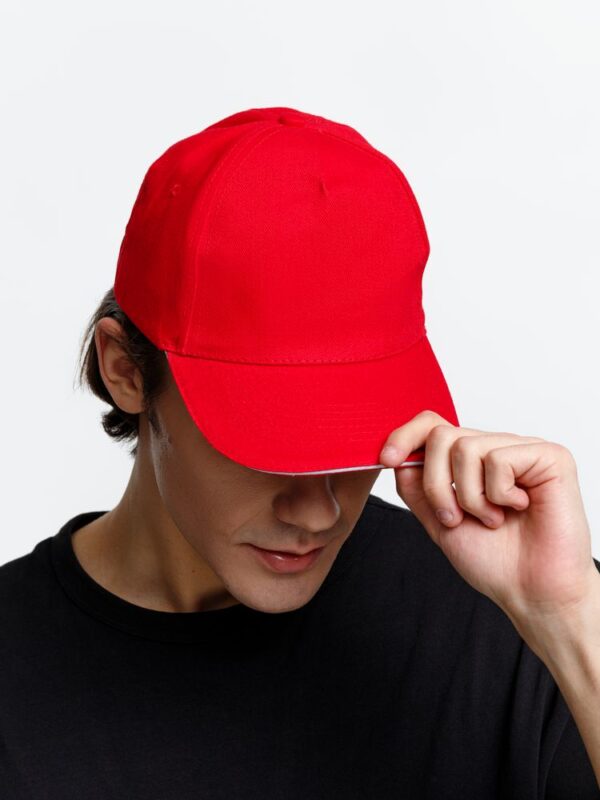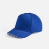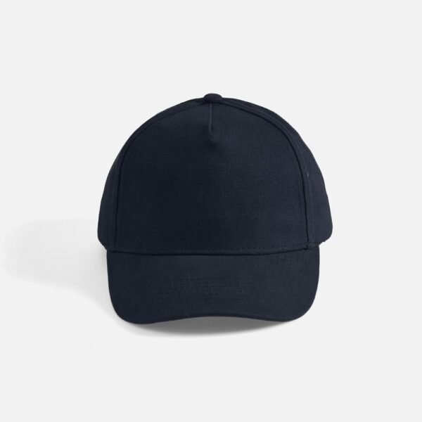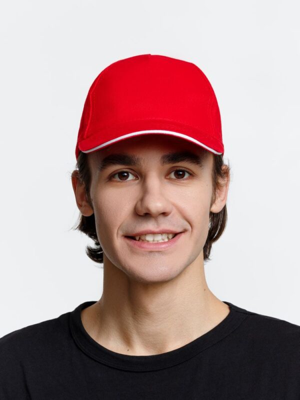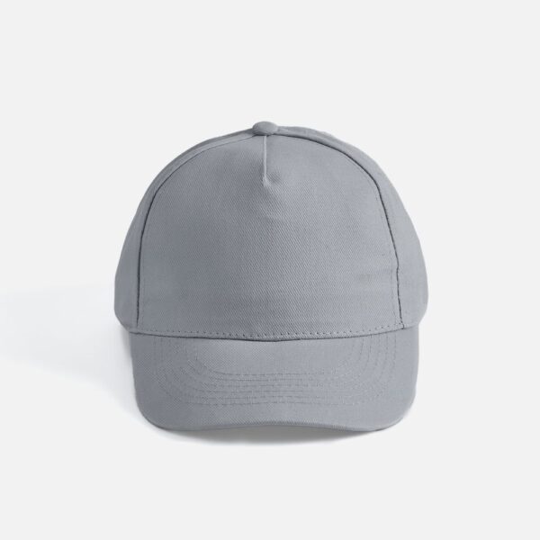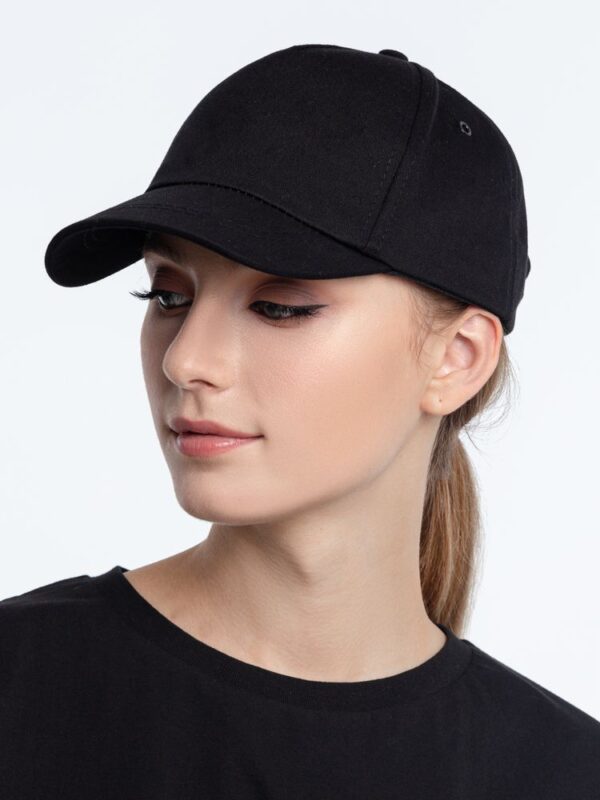 Модель бейсболки с 5-ю клиньями без лобового шва из плотного чесаного хлопка.
