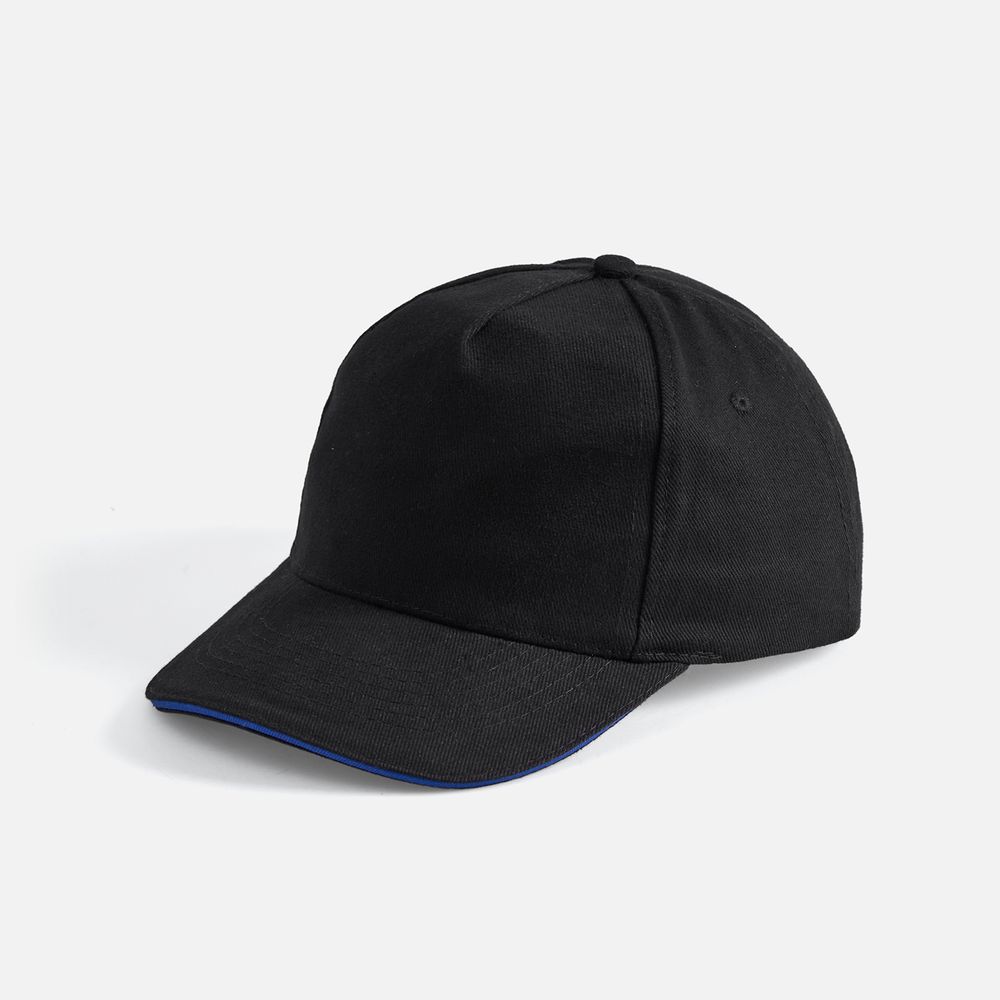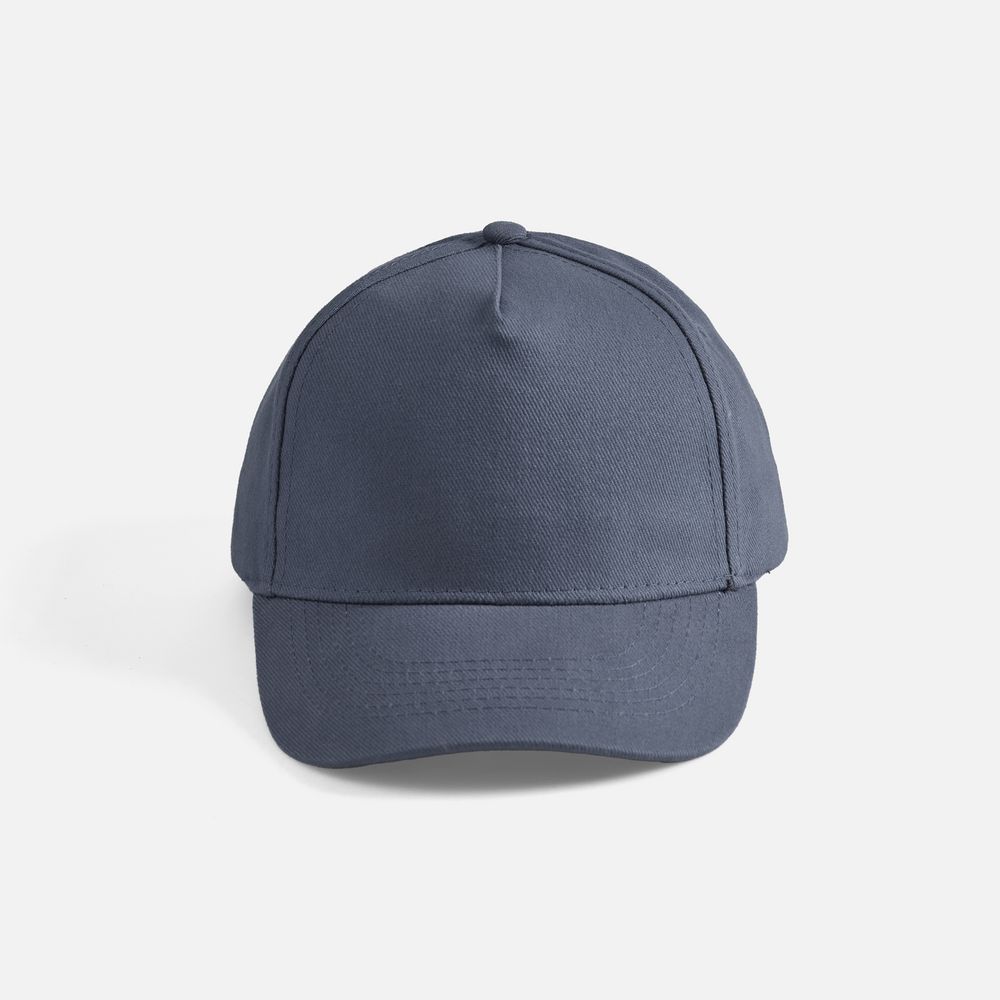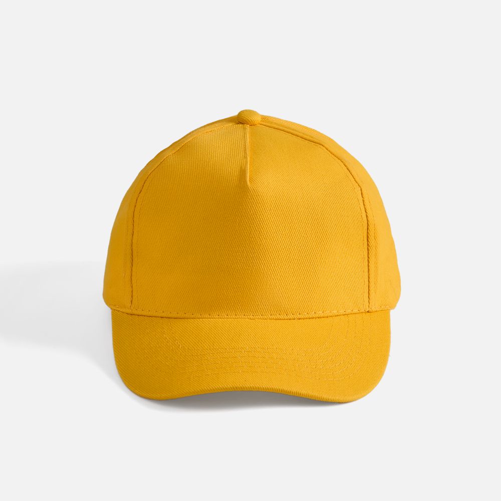 Модель бейсболки с 5-ю клиньями без лобового шва из плотного чесаного хлопка.