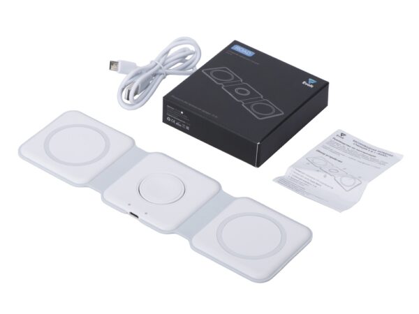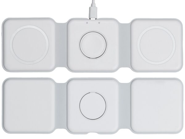 Беспроводная зарядная станция 3 в 1 — это современное решение для быстрой и удобной зарядки ваших устройств. Эта компактная и практичная модель позволяет заряжать сразу три устройства одновременно- любой смартфона и наушники с поддержкой беспроводной зарядки по протоколу Qi, и часы Apple.