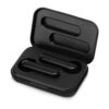 Беспроводные наушники «Mels» бренда Evolt обеспечивают до 16 часов суммарного воспроизведения музыки и работают на расстоянии до 10 метров от сопряженного с ним смартфона или иного гаджета. Зарядный чехол имеет разъем mini USB, внутри которого есть шкала заряда, состоящая из четырех делений.