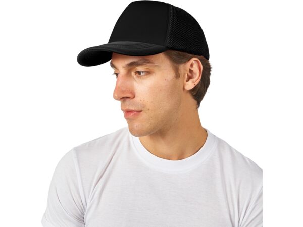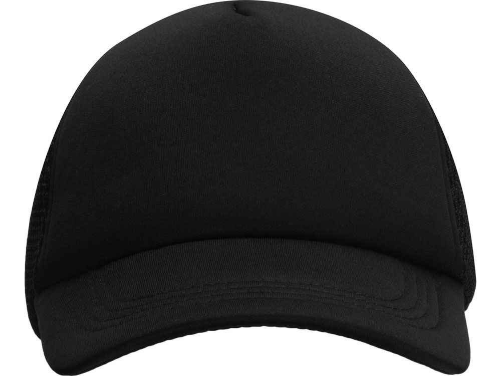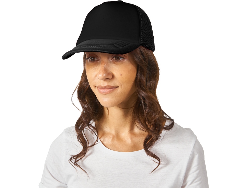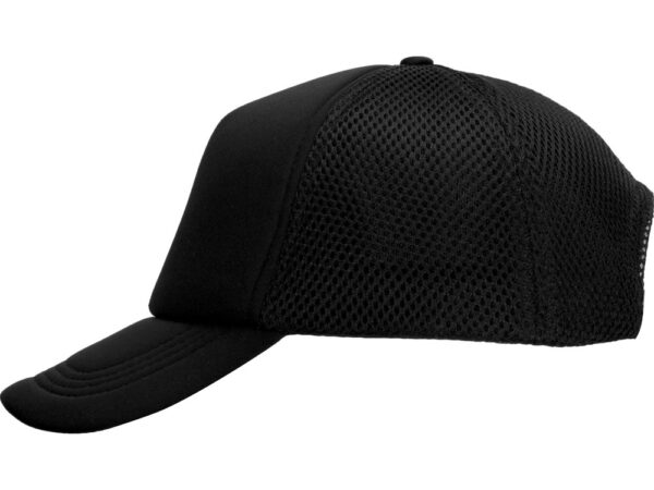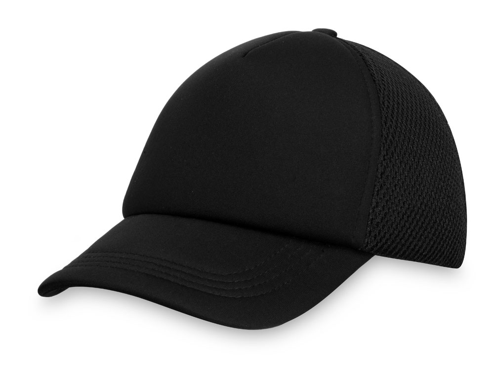 Бейсболка из 5 клиньев с мягкой сеткой. Регулируемая пластиковая застежка сзади. Передняя панель продублирована тонким поролоном.