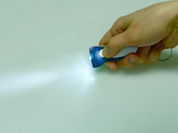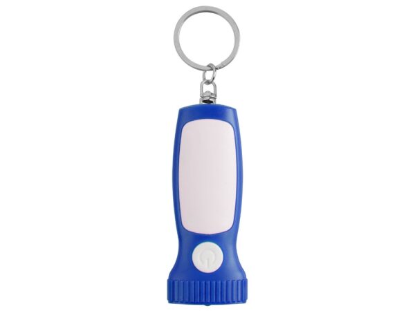 Яркий брелок со встроенным фонариком. Плоская форма и большая ручка с белой вставкой делает брелок удобным для нанесения логотипа.