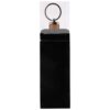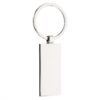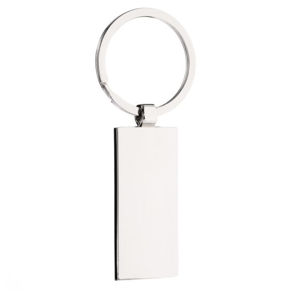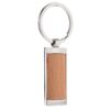 Металлический прямоугольный брелок с деревянной вставкой.