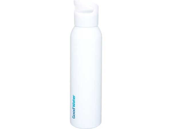 Алюминиевая бутылка с одинарными стенками и съемной крышкой. На крышке есть ручка для удобной переноски. Без содержания БФА. Объем 650 мл.