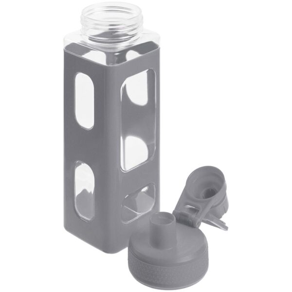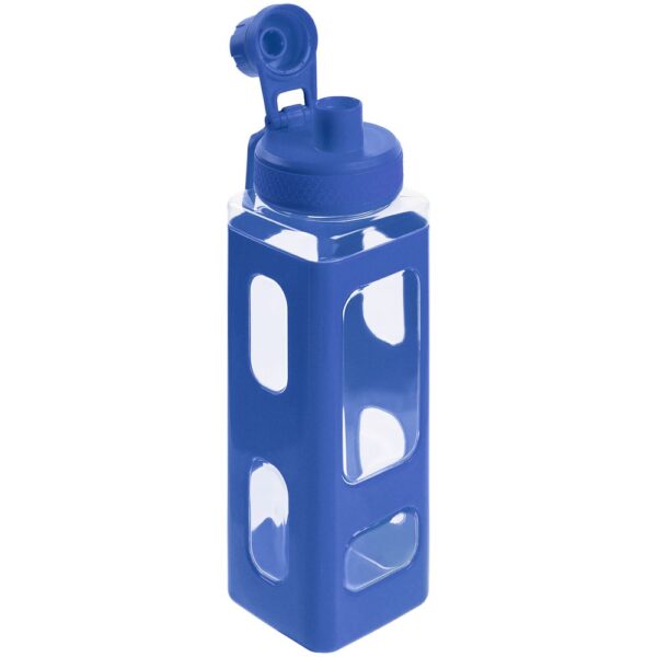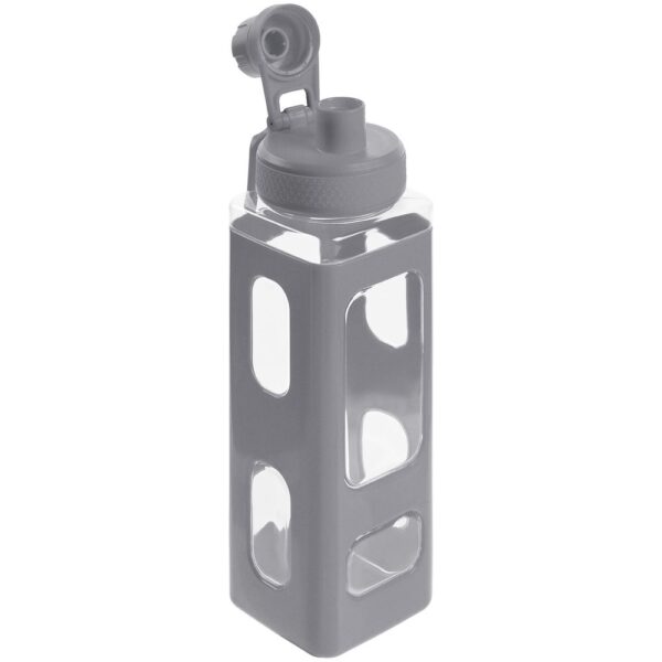 Вместительная квадратная бутылка для воды. Прозрачные окошки позволяют визуально оценить, сколько жидкости осталось внутри.