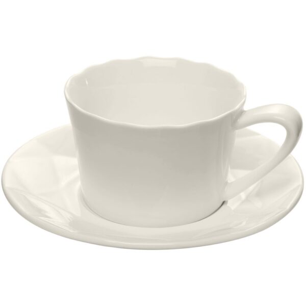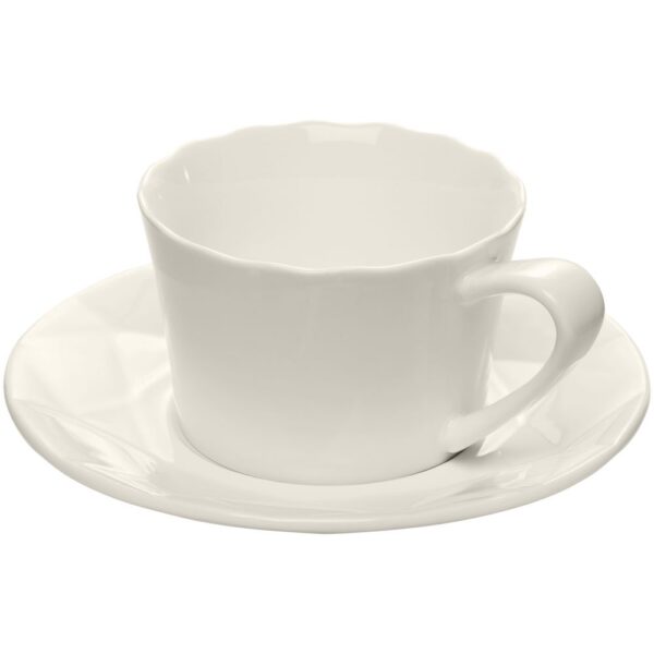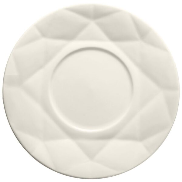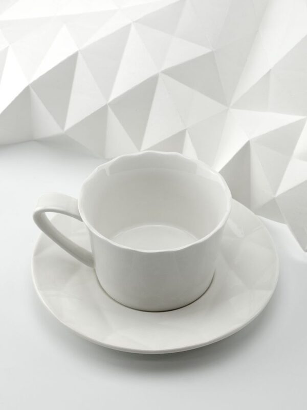 Линейка столовой посуды Diamante Bianco — настоящий бриллиант коллекции Altavolo. Структура и пропорции граней блюдца в точности повторяют верхнюю часть бриллианта классической огранки — корону. Присмотритесь — и вы увидите, как играет свет на молочно-белом фарфоре.Емкость чашки 220 мл.