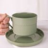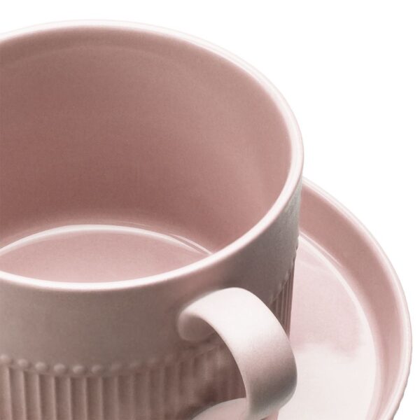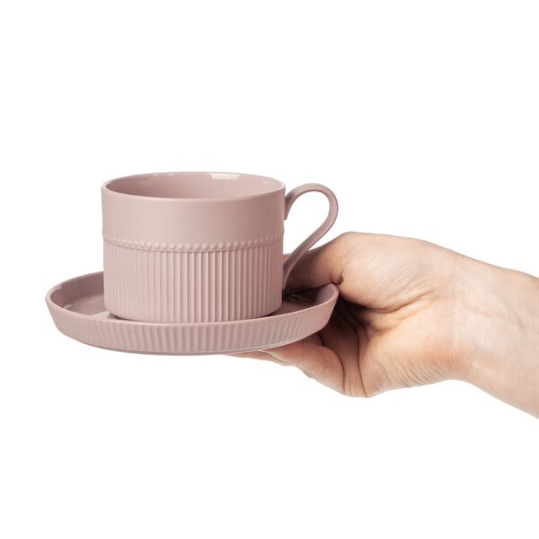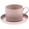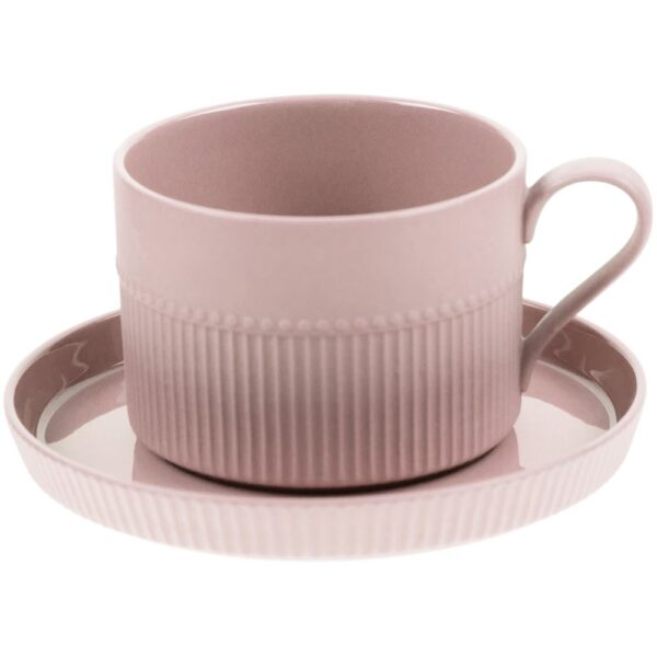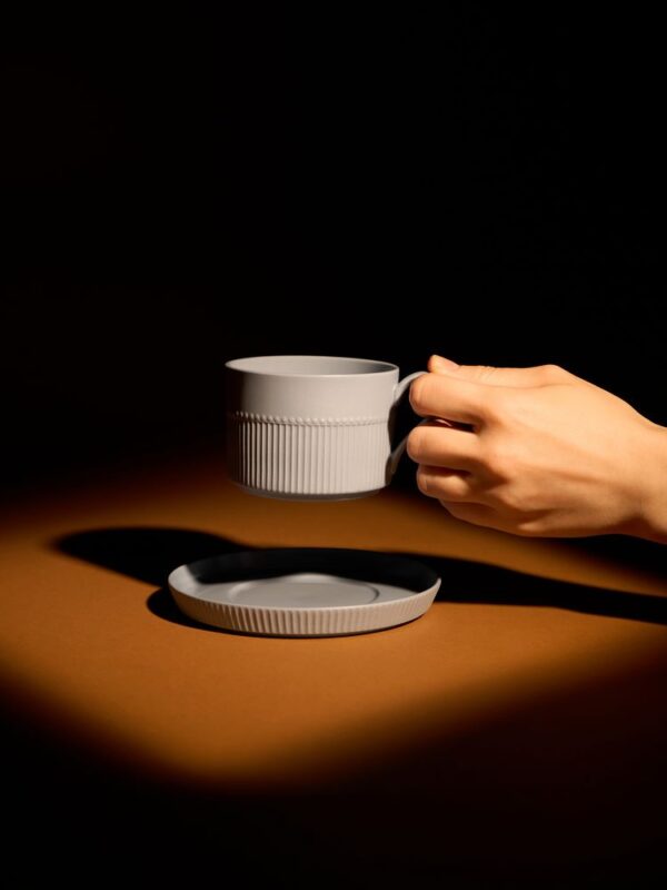 Орнамент корпуса кружки и высокого бортика блюдца напоминает изящные каннелюры — вертикальные желобки на колонне. Это добавляет всему изделию изысканности и стилистической завершенности, благородства и античной строгости.