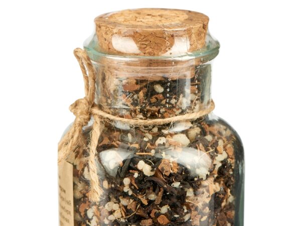 Состав: чай чёрный с имбирём и соком имбиря (чай чёрный байховый крупнолистовой, кусочки имбиря, сок имбиря), медовые гранулы, корица дроблёная.