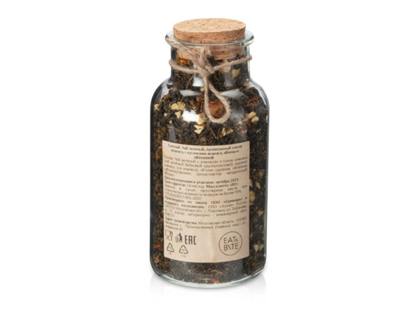 Состав: чай зелёный с ананасом и соком ананаса (чай зелёный байховый крупнолистовой, кусочки ананаса, сок ананаса), яблоко сушеное, облепиха сублимированная, ароматизатор натуральный «Яблоко».