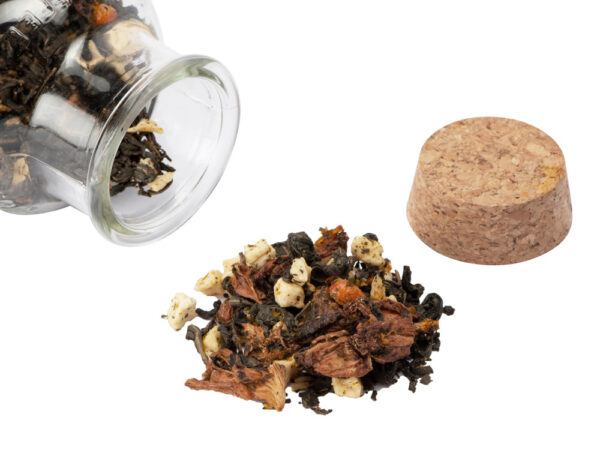 Чай с соком — натуральный, вкусный и полезный для здоровья напиток. Это не просто чай с фруктовыми кусочками и добавками, а чайные листья, «наполненные» соком свежайших плодов. Для изготовления 2 тонн такого чая используется 20 тонн свежих фруктов. По технологии чайные листья смешиваются с нарезанными кусочками фруктов и пропитываются выделяющимся соком. После этого вобравшие сок листья чая высушиваются и смешиваются с сублимированными ягодами или фруктами, образуя уникальный напиток.