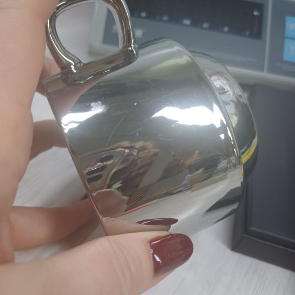 Роскошная чайная пара – отличный подарок для любителей чая. В наборе фарфоровые чашка и блюдце. Дизайн построен на сочетании жемчужного и серебристого цветов. Возможно нанесение тампопечати.