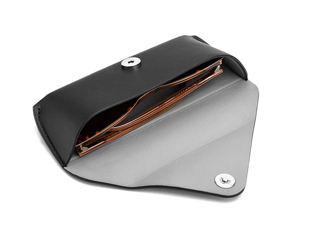 Очечник выполнен из натуральной, дублированной кожи. Внутренняя часть из специальной подкладочной кожи, лицевая часть из износостойкой кожи Наппа, магнитная фурнитура.