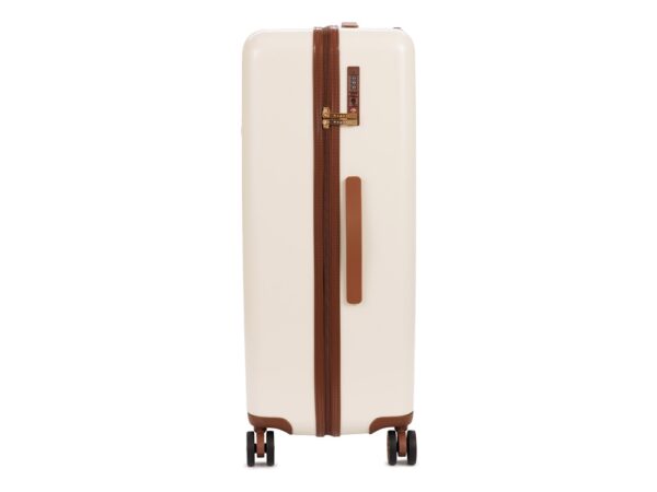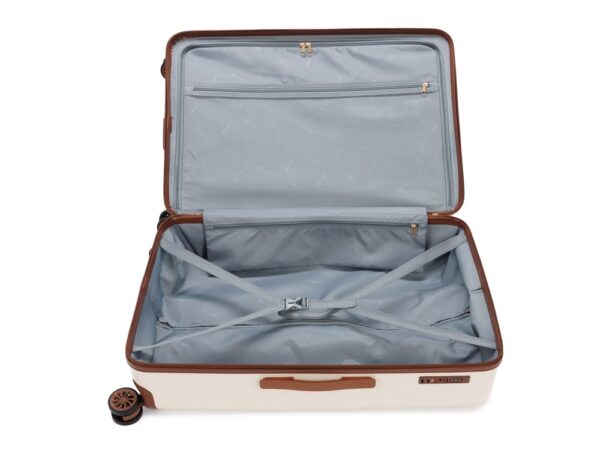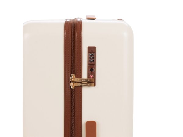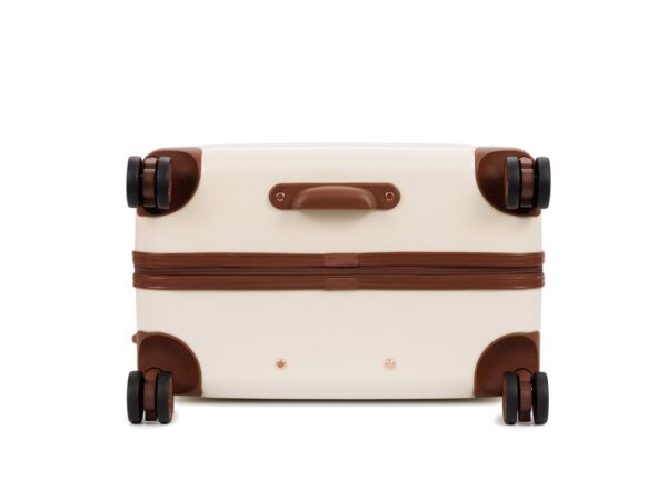 AMELIA воплощает собой неповторимый образ, сочетающий эстетику ретро с современной функциональностью. Вся товарная линейка представлена в великолепных темно-изумрудном и кремовом оттенках. Контрастные детали насыщенного коричневого цвета, бронзовые ручки и фурнитура идеально дополняют дизайн, подчеркивают индивидуальность и выразительность каждой модели. Изготовленные из высококачественного АБС-пластика и поликарбоната, чемоданы AMELIA обладают удивительной прочностью и легкостью. Четыре резиновых колеса с бесшумным ходом и возможностью поворота на 360° обеспечивают плавное передвижение по любой поверхности, сохраняя при этом полную маневренность. Интегрированный замок TSA с трехзначным кодом гарантирует защиту вашего багажа от несанкционированного доступа. Продуманная концепция больших отделений с перегородкой на молнии и дополнительными карманами максимально оптимизирует использование внутреннего пространства. Легкая телескопическая ручка с несколькими положениями фиксации обеспечивает комфорт в использовании для людей разного роста. Удобные ручки сбоку и на дне корпуса облегчают загрузку и выгрузку чемодана. Боковые держатели позволяют разместить дополнительные дорожные аксессуары.