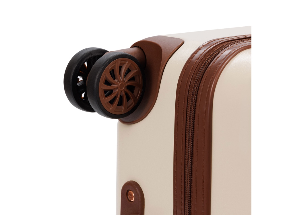 AMELIA воплощает собой неповторимый образ, сочетающий эстетику ретро с современной функциональностью. Вся товарная линейка представлена в великолепных темно-изумрудном и кремовом оттенках. Контрастные детали насыщенного коричневого цвета, бронзовые ручки и фурнитура идеально дополняют дизайн, подчеркивают индивидуальность и выразительность каждой модели. Изготовленные из высококачественного АБС-пластика и поликарбоната, чемоданы AMELIA обладают удивительной прочностью и легкостью. Четыре резиновых колеса с бесшумным ходом и возможностью поворота на 360° обеспечивают плавное передвижение по любой поверхности, сохраняя при этом полную маневренность. Интегрированный замок TSA с трехзначным кодом гарантирует защиту вашего багажа от несанкционированного доступа. Продуманная концепция больших отделений с перегородкой на молнии и дополнительными карманами максимально оптимизирует использование внутреннего пространства. Легкая телескопическая ручка с несколькими положениями фиксации обеспечивает комфорт в использовании для людей разного роста. Удобные ручки сбоку и на дне корпуса облегчают загрузку и выгрузку чемодана. Боковые держатели позволяют разместить дополнительные дорожные аксессуары.