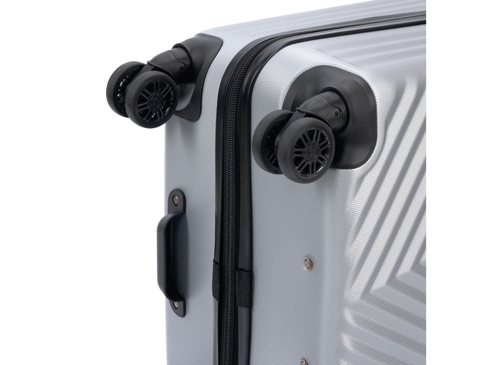 Легкая регулируемая телескопическая алюминиевая ручка и система из 8 колес, вращающихся на 360 градусов, обеспечивает мягкий ход и свободное движение во всех направлениях.