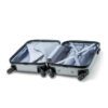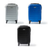 Чемодан из прочного АБС-пластика. Внутри два основных отделения и дополнительный сетчатый карман. Включает встроенный замок безопасности.