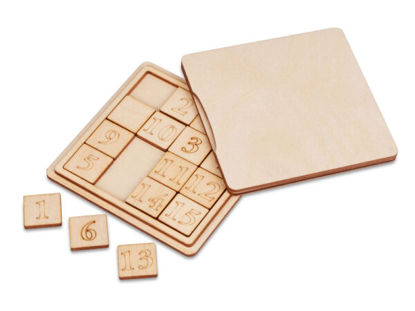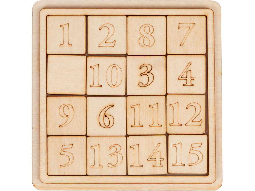 Задача игрока — выставить все цифры в правильном порядке от 1 до 15. Поле из берёзовой фанеры вмещает в себя 15 квадратов с цифрами и одно пустое место для перемещения цифр.