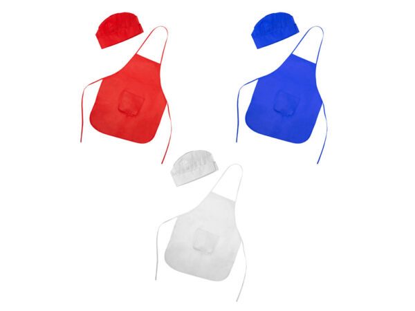 Нетканый цветной фартук и шапочка для детей. Единый размер, регулируется застежкой-липучкой на кепке.