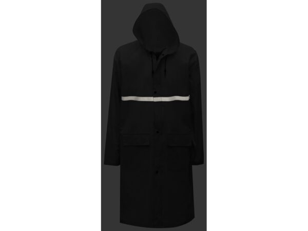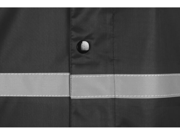 Светоотражающая тесьма на груди и спине делает человека в плаще заметным даже в темное время суток. Вместительные накладные карманы защищены сверху клапаном.