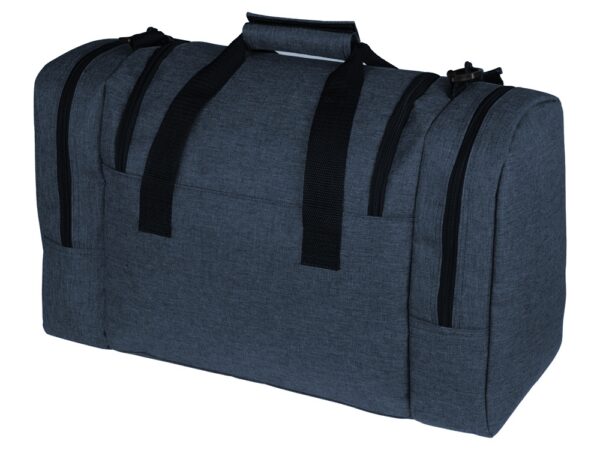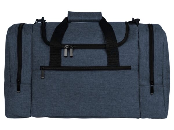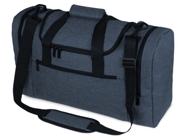 Удобная и прочная сумка для путешествий или походов в спортзал. Два вместительных больших кармана на молниях по бокам и один спереди. Сумка сделана из плотной долговечной ткани. Ремень на плечо отстегивается и регулируется по длине.