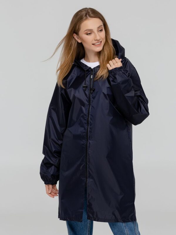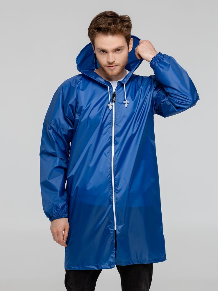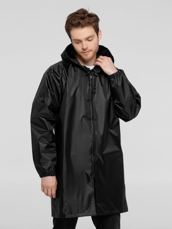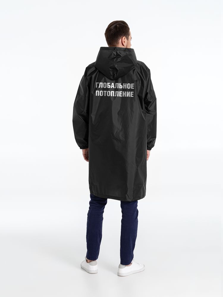 Если в воздухе запахло мокрым, плащ позволит смыться с места происшествия и выйти из воды совершенно сухим.Плащ-дождевик из ткани таффета на молнии с капюшоном. Складывается в мешочек — удобно брать с собой.