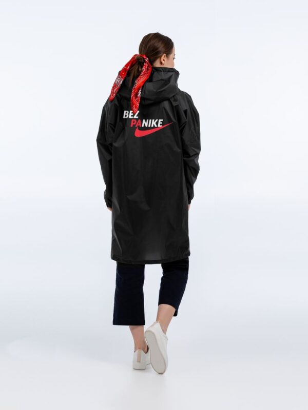 Коллекция «Антимерч» — это дружественный оммаж на известные бренды, которые способны обретать новые смыслы, если их немного подсолить иронией.Плащ-дождевик из ткани таффета на молнии с капюшоном. Складывается в мешочек — удобно брать с собой.