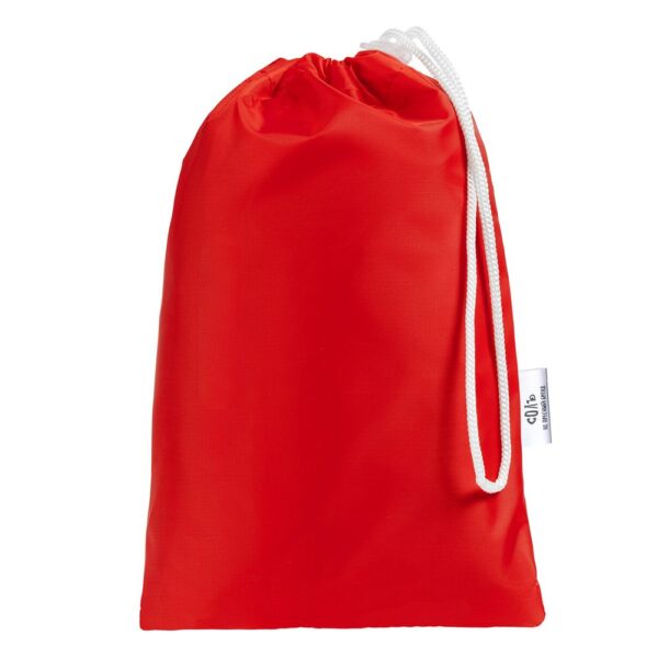 Плащ-дождевик на молнии с капюшоном. Складывается в мешочек — удобно брать с собой.