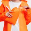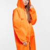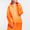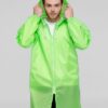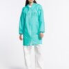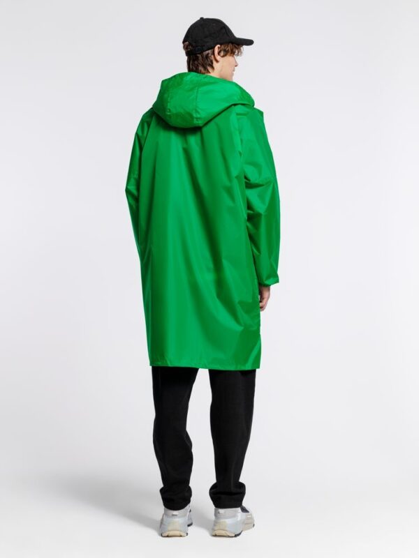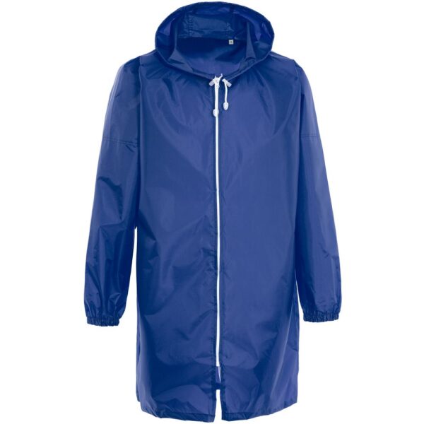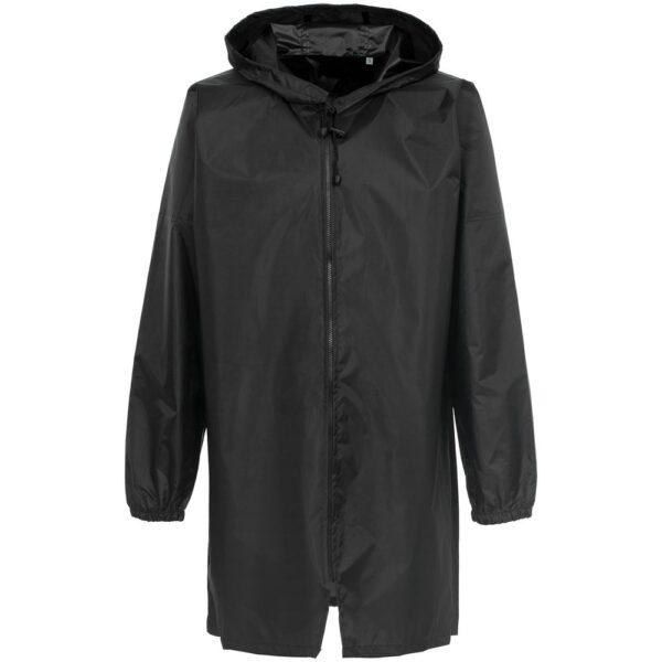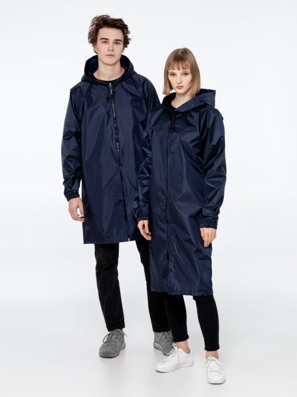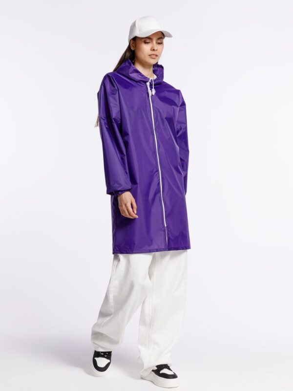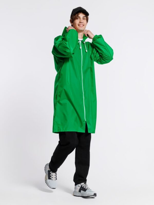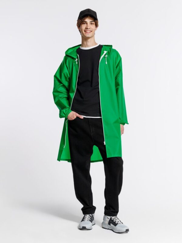 Плащ-дождевик из ткани таффета на молнии с капюшоном. Складывается в мешочек — удобно брать с собой.