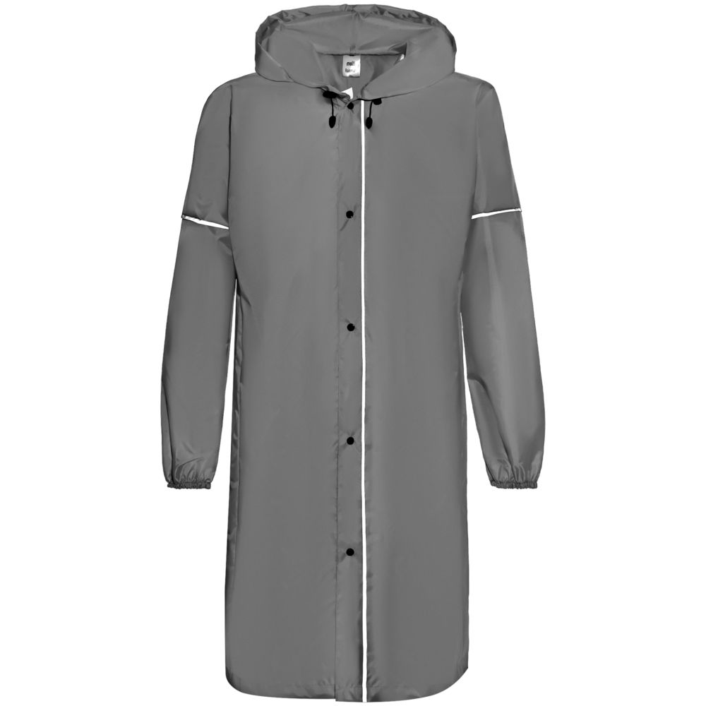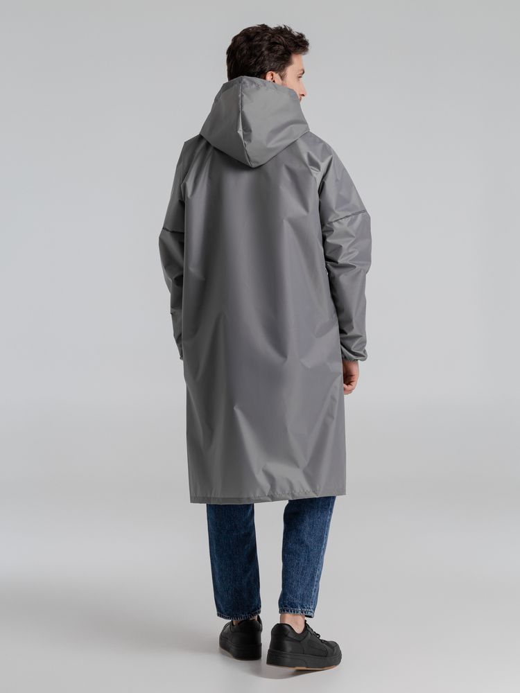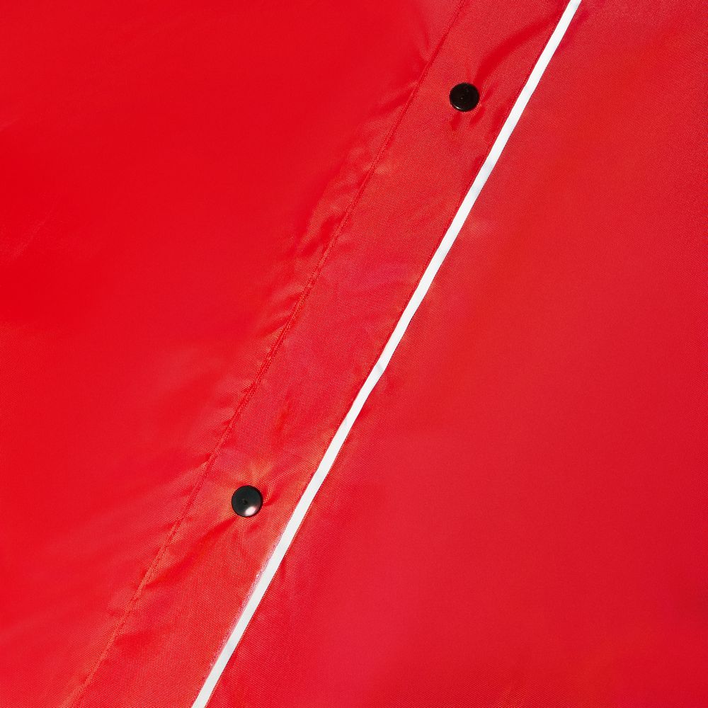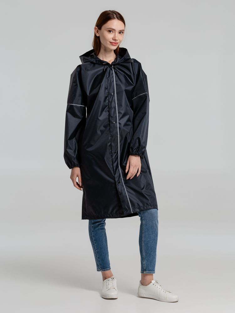 Плащ-дождевик из ткани оксфорд на кнопках с капюшоном. Световозвращающие элементы на рукавах и планке позволяют быть замеченным в темное время суток.