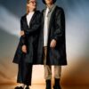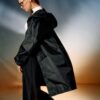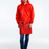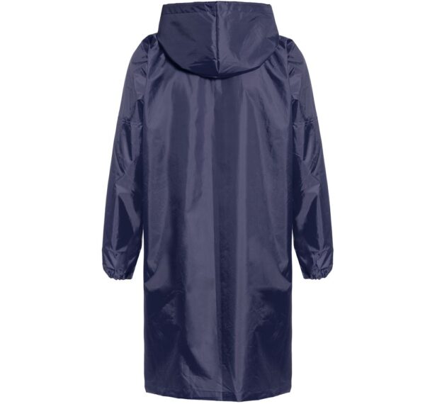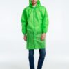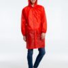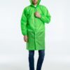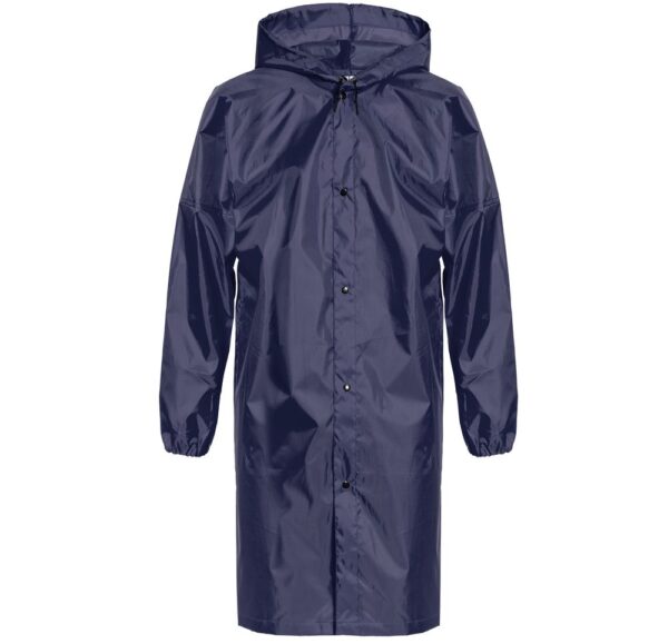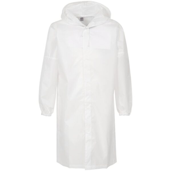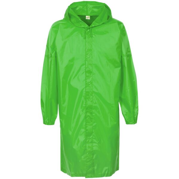 Плащ-дождевик из ткани таффета на кнопках с капюшоном.
