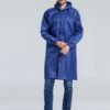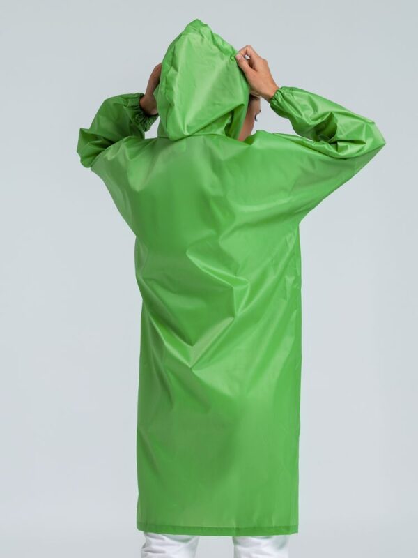 Плащ-дождевик из ткани оксфорд на кнопках с капюшоном.