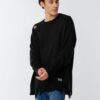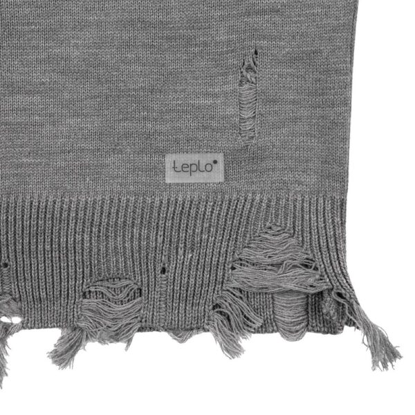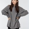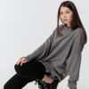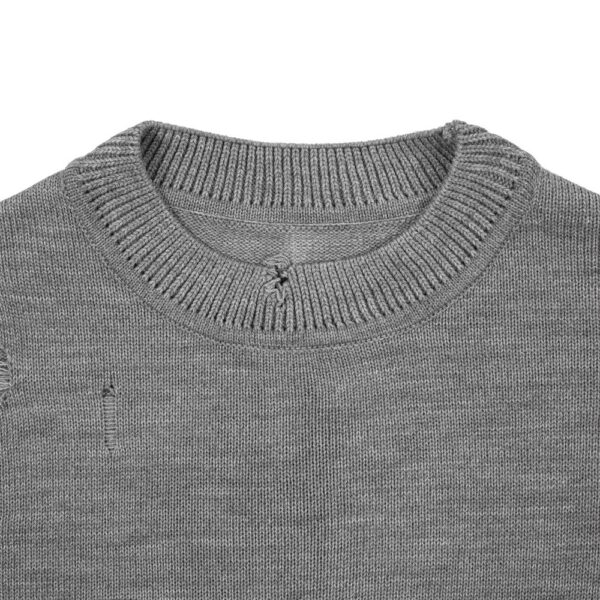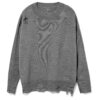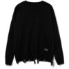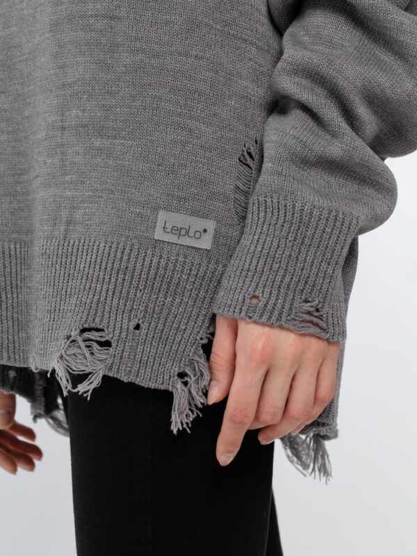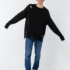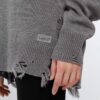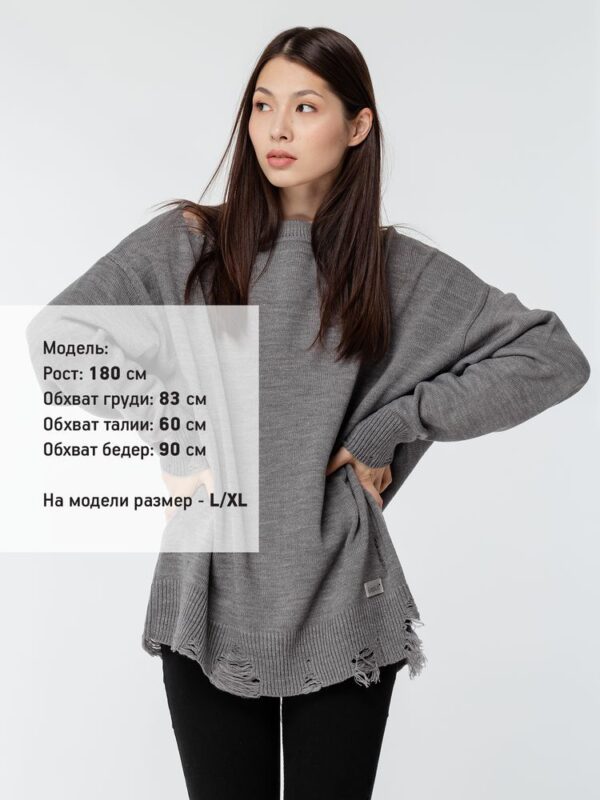 Оверсайз джемпер с круглым вырезом и рваными краями. Ворот, манжеты и низ изделия выполнены резинкой.