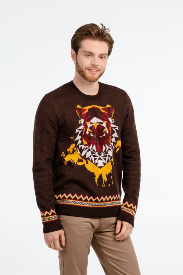 Джемпер с круглым вырезом и жаккардовым рисунком.