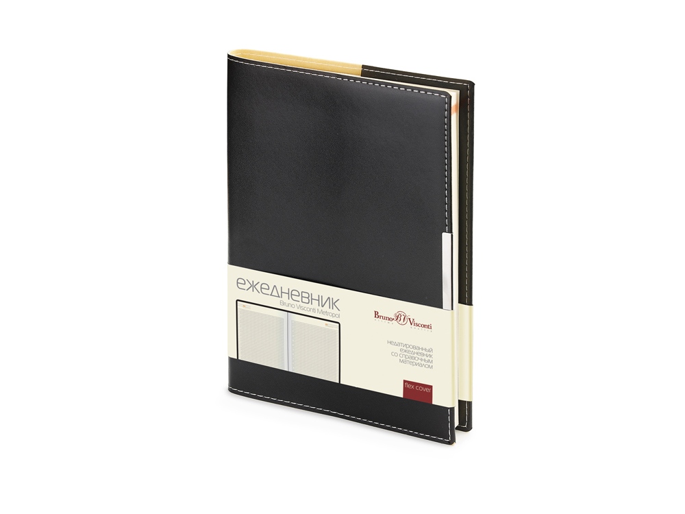 Удобный и практичный недатированный ежедневник в мягкой обложке из прочного переплетного материала. Контрастная прострочка белыми нитками по периметру привлекает внимание к изящной форме обложки с закругленными уголками. Обложка украшена металлическим шильдом. Линовка блока — клетка, с указанием времени дня. Формат удобен для ведения регулярных записей. Готов к персонализации.