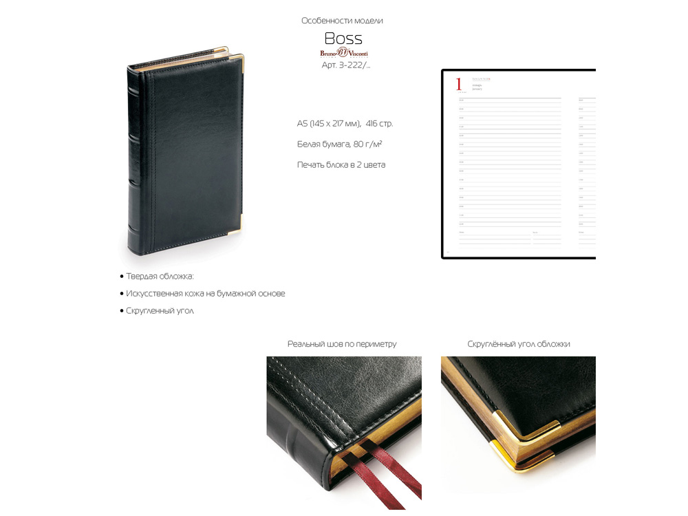 Полудатированный ежедневник «Boss» от бренда Bruno Visconti — это качественный корпоративный подарок по выгодной цене, произведенный специально под персонализацию. Представлен в универсальном формате А5 и состоит из 416 страниц.