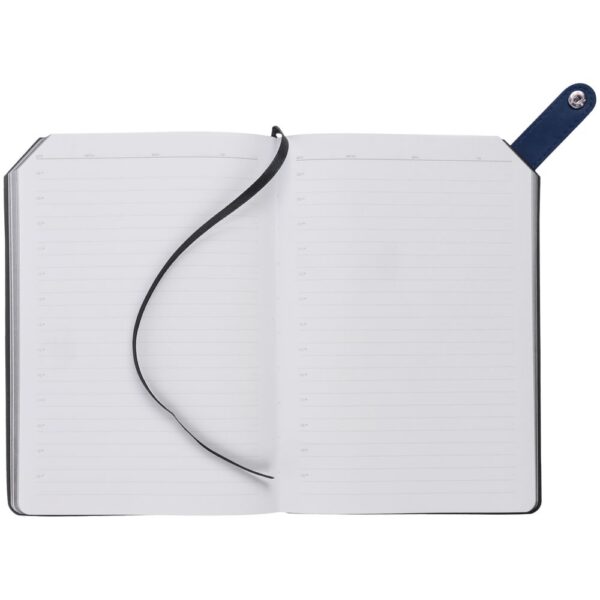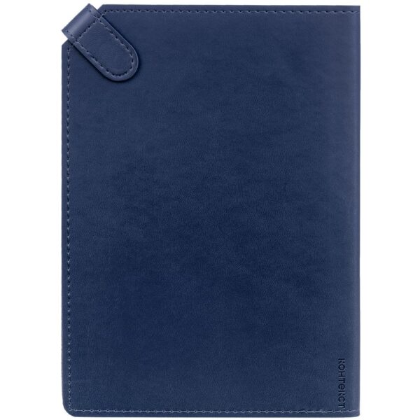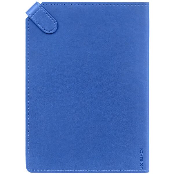 Ежедневник с гибкой обложкой и тонированным обрезом. Выполнен из материала Latte, синий НН, дополнен черным ляссе.