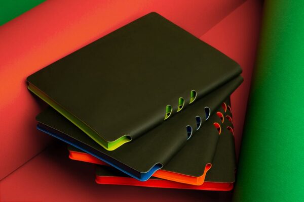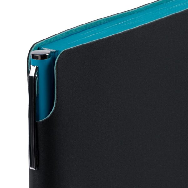Гибкая обложка ежедневника выполнена из материала Soft Touch Pearl, черный АА и цветного Latte (внутренняя часть обложки).