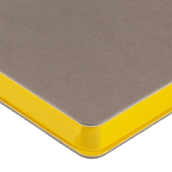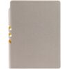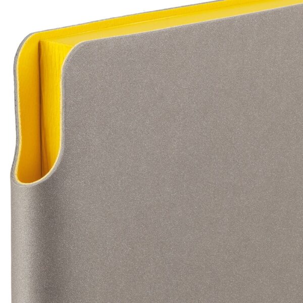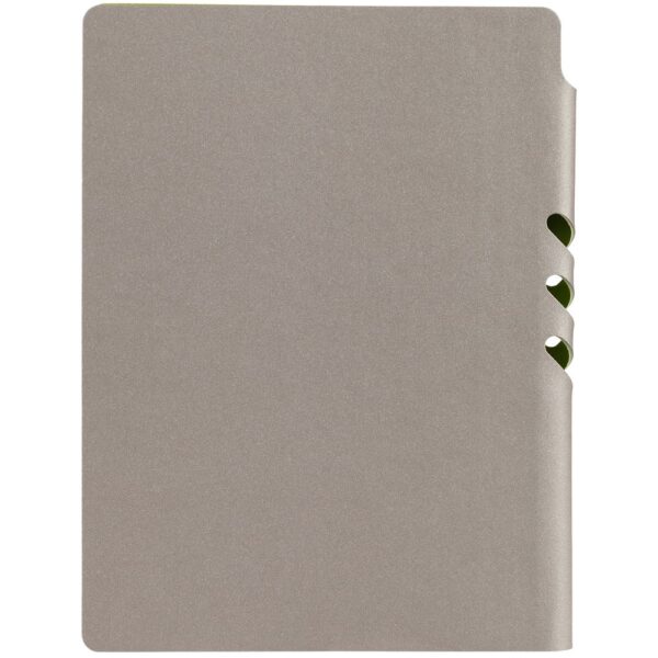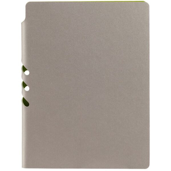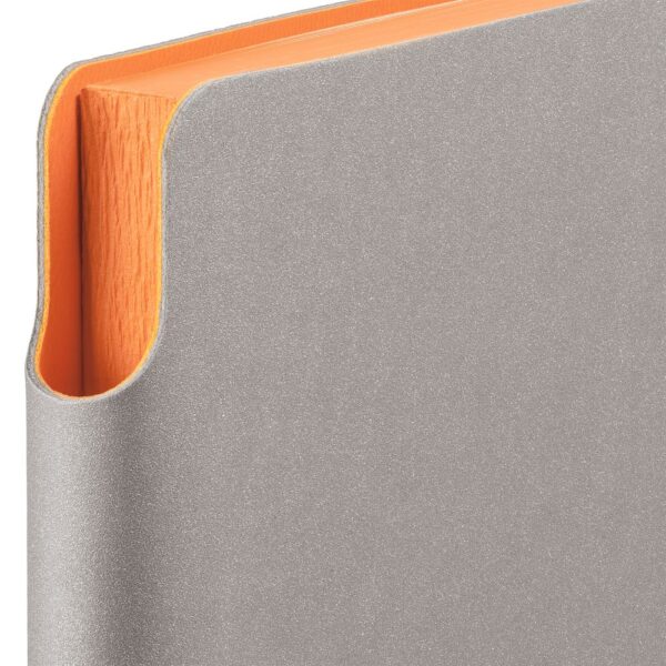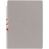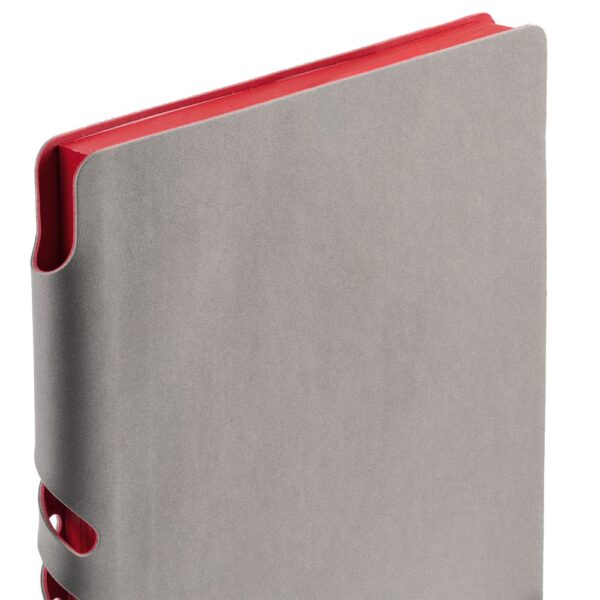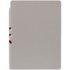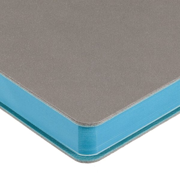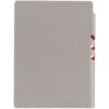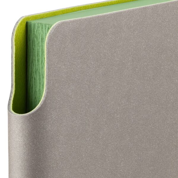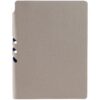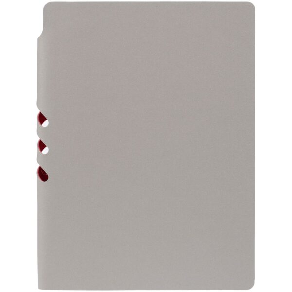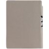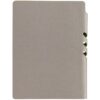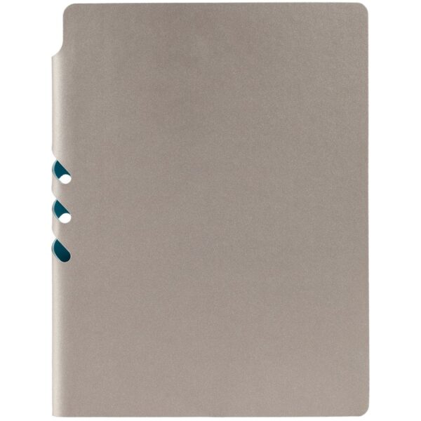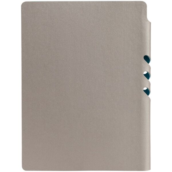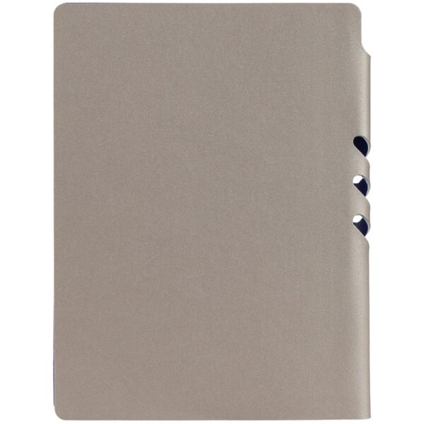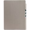 Гибкая обложка выполнена из материала Velour Melange, серый СС и Latte, синий НН (внутренняя часть обложки). Внутри корешка — специальное место для крепления ручки размером до 15х0,9 см.