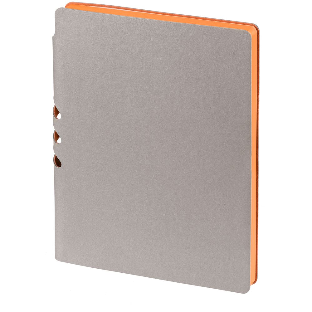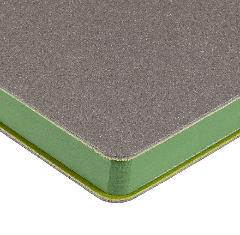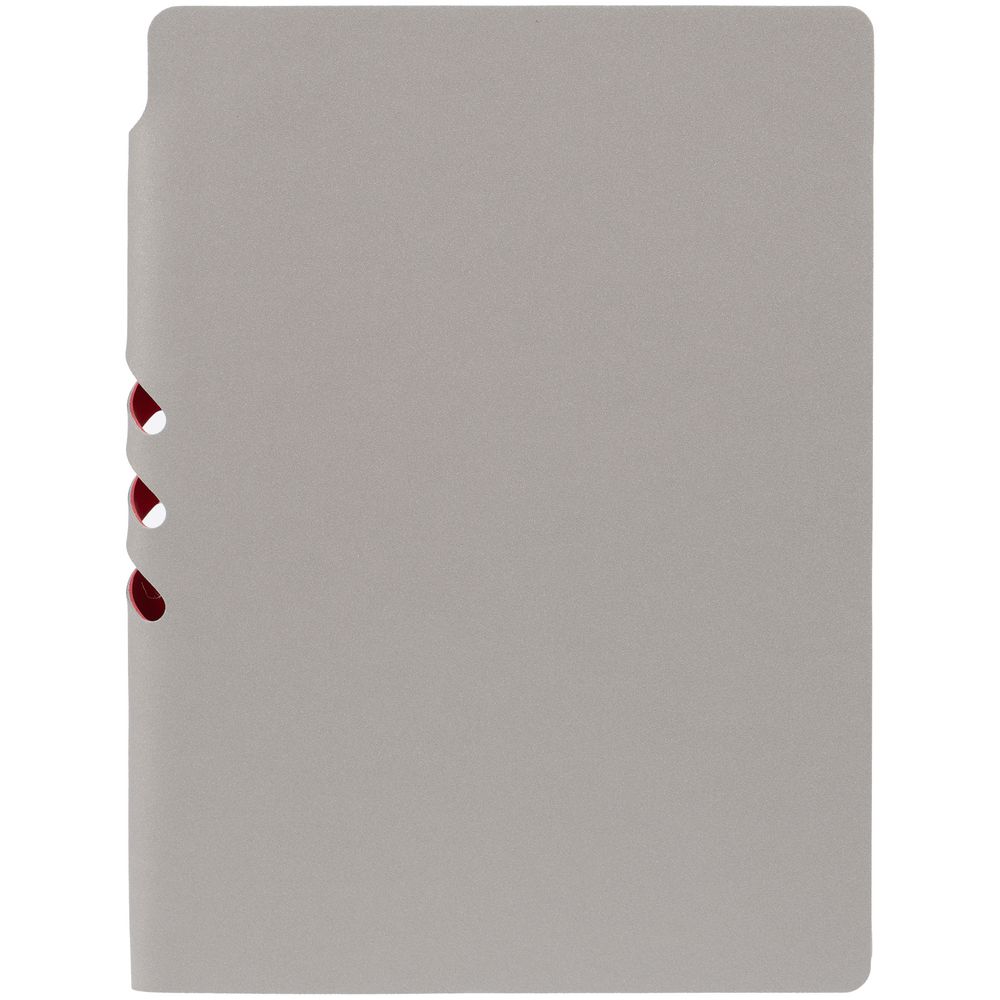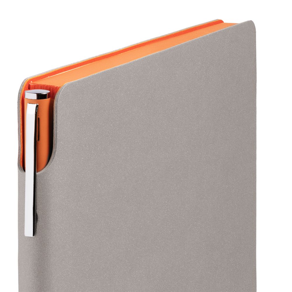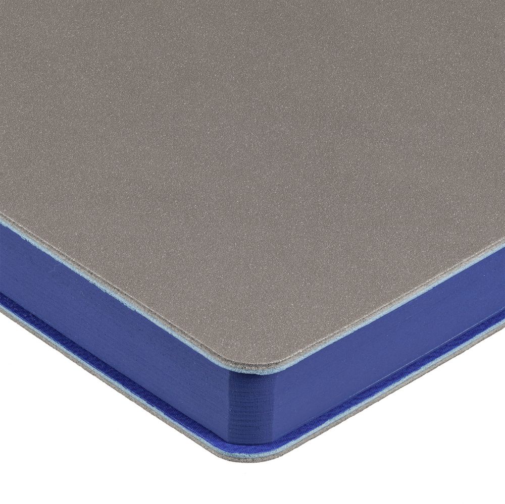 Гибкая обложка выполнена из материала Velour Melange, серый СС и Latte, синий НН (внутренняя часть обложки). Внутри корешка — специальное место для крепления ручки размером до 15х0,9 см.