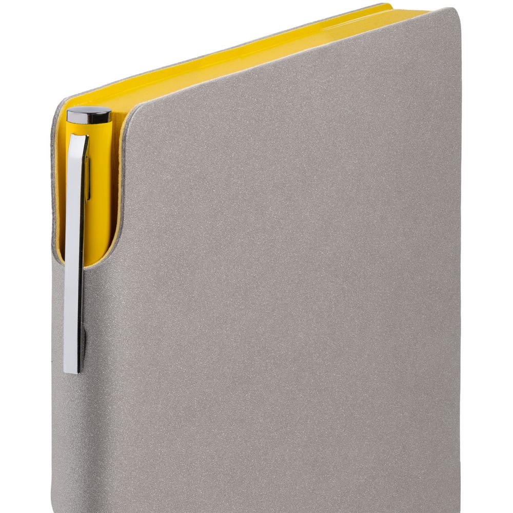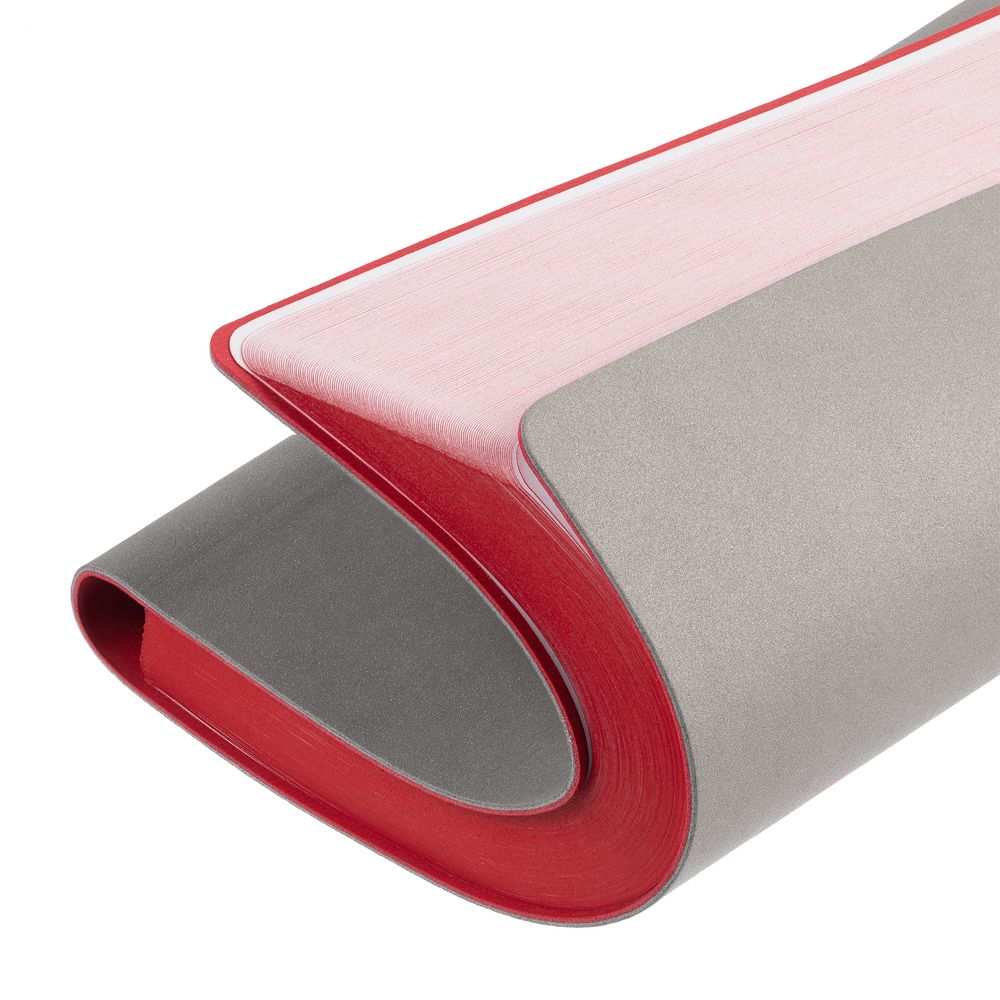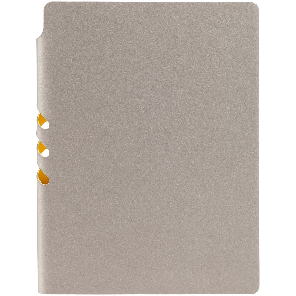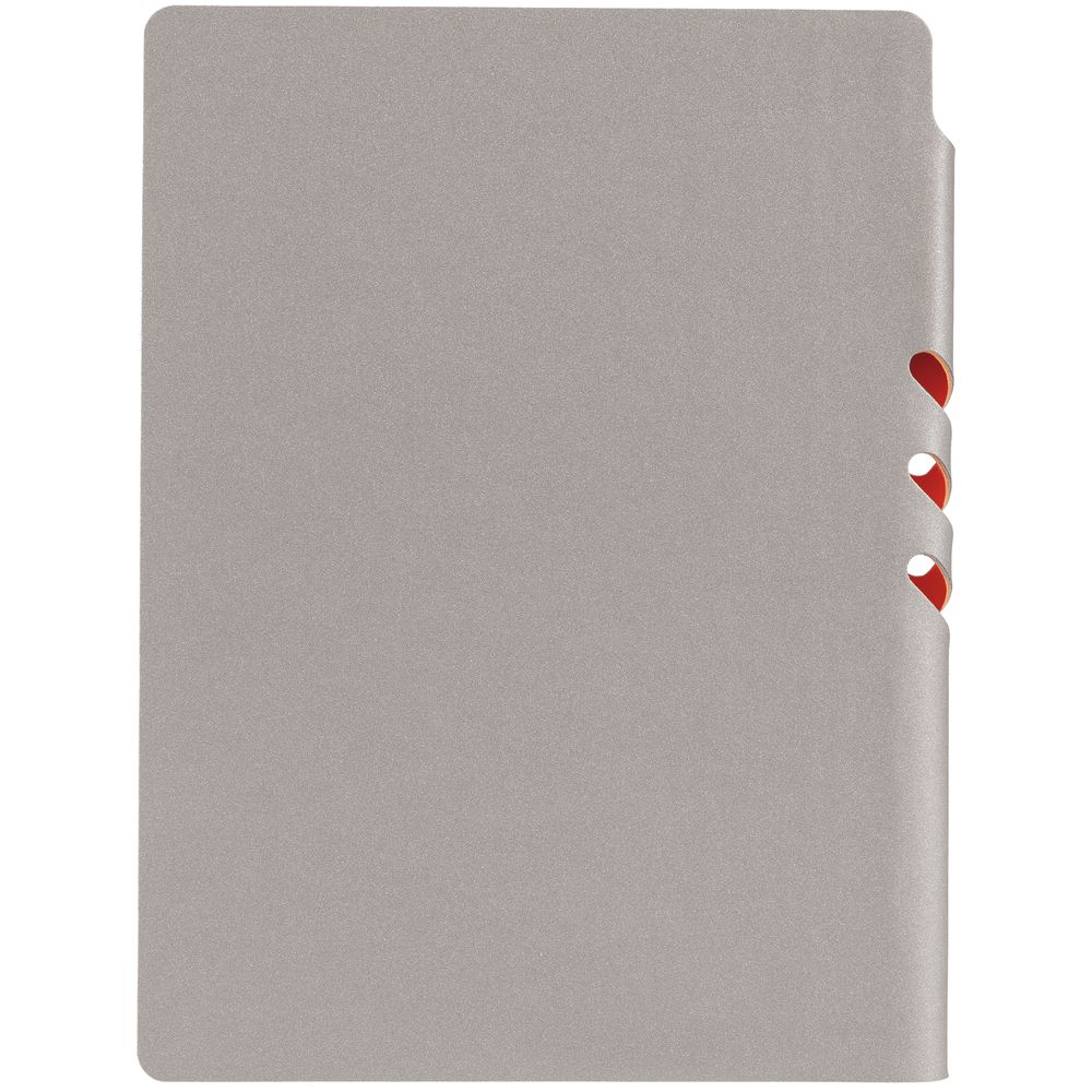 Гибкая обложка выполнена из материала Velour Melange, серый СС и Latte, синий НН (внутренняя часть обложки). Внутри корешка — специальное место для крепления ручки размером до 15х0,9 см.