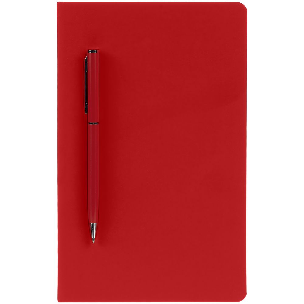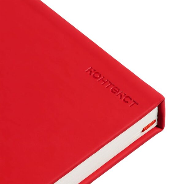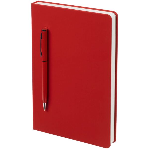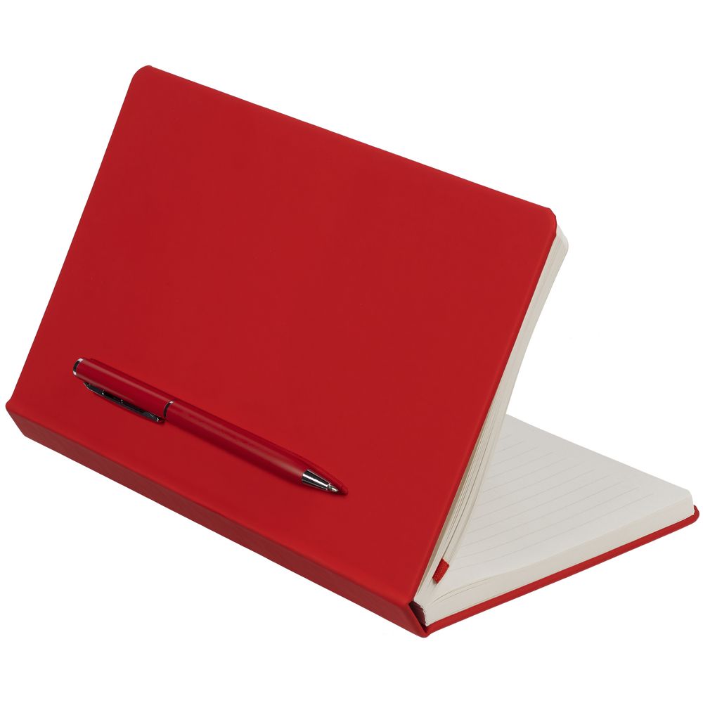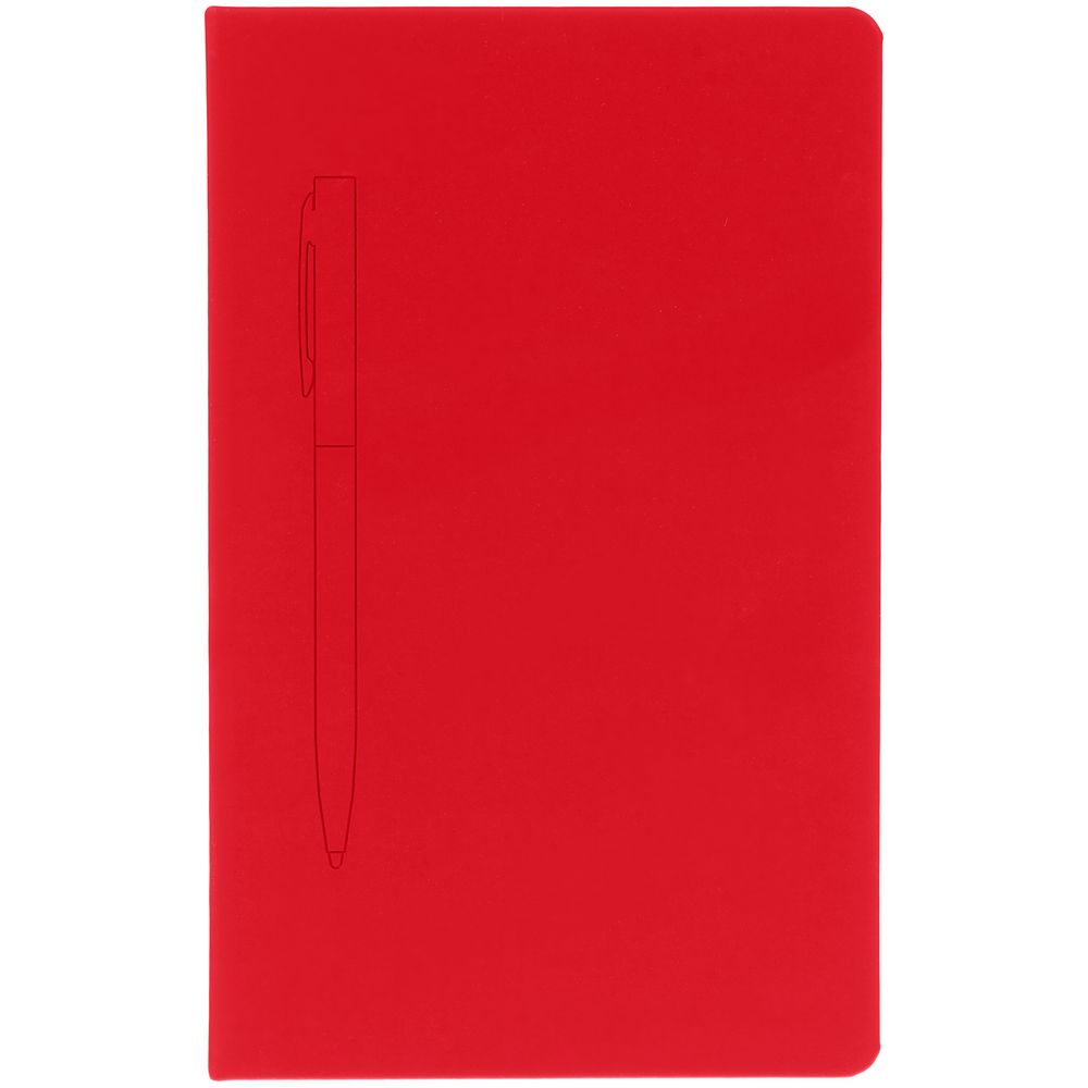 Ежедневник в твердой обложке, выполненной из материала Soft Touch Ultra, красный РР, дополнен цветным ляссе и магнитом, удерживающим ручку.