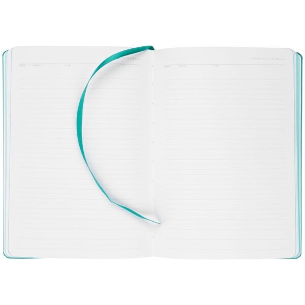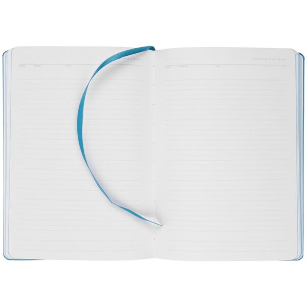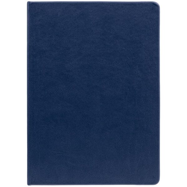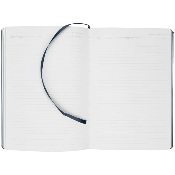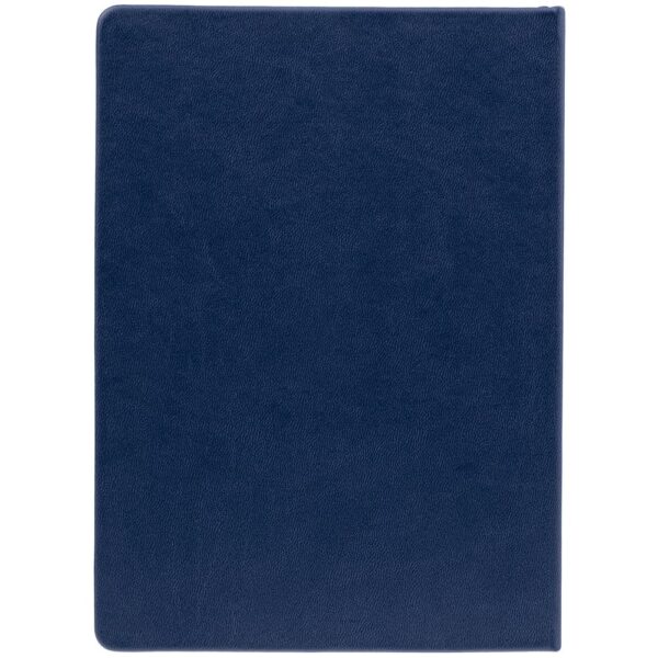 Ежедневник с твердой обложкой. Выполнен из материала Latte, темно-синий, дополнен ляссе в цвет обложки.