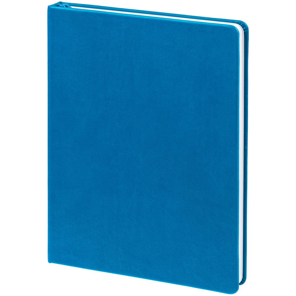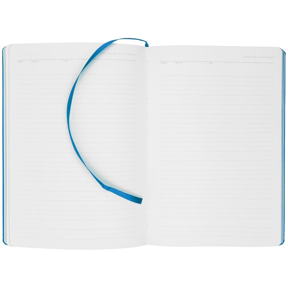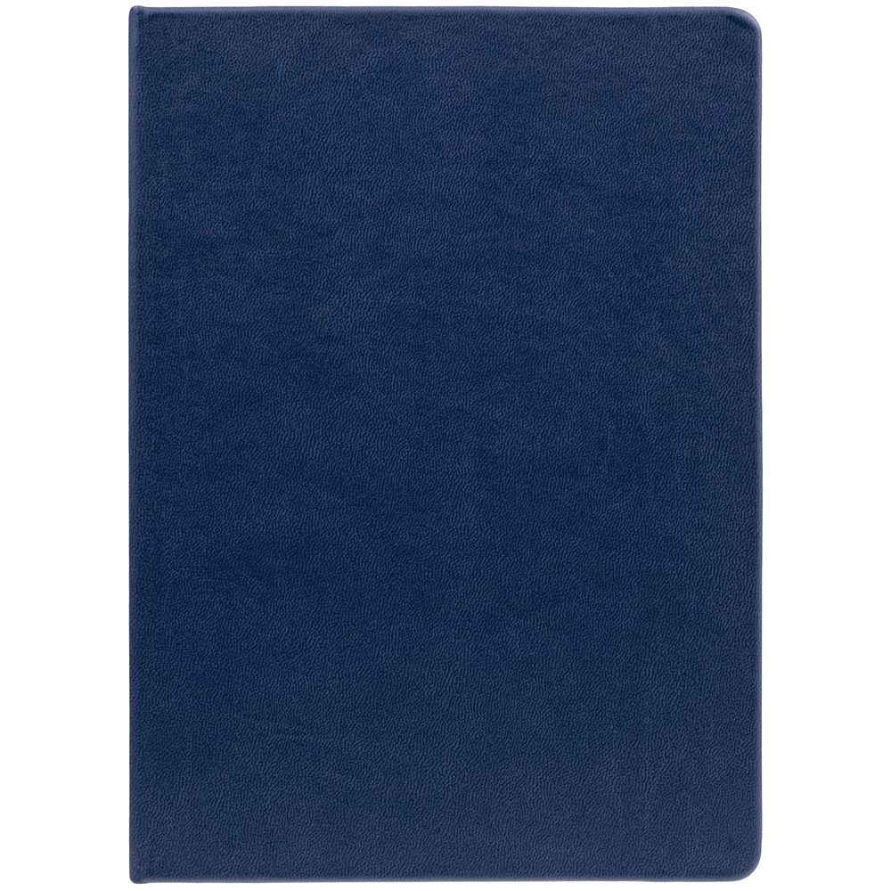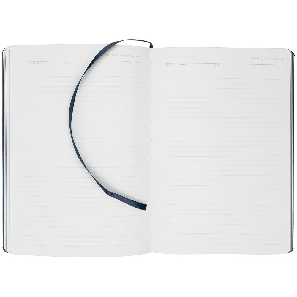 Ежедневник с твердой обложкой. Выполнен из материала Latte, темно-синий, дополнен ляссе в цвет обложки.